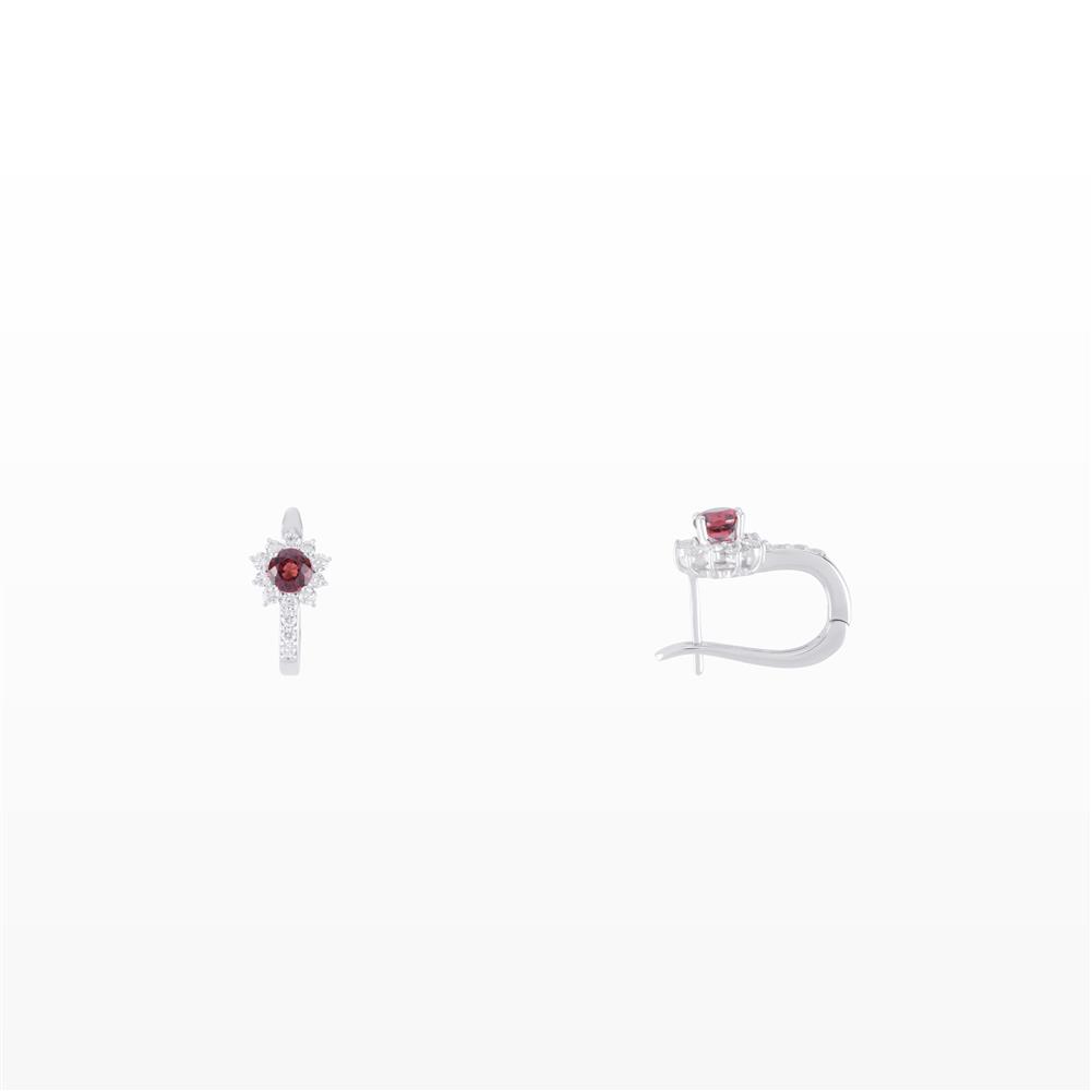 Tựa đóa hoa rực rỡ giữa ánh nắng sớm, đôi bông tai vàng đính đá Garnet đỏ mang đến vẻ đẹp nồng nàn, sang trọng và đầy mê hoặc. Viên đá đỏ sâu thẳm ở trung tâm – biểu tượng của tình yêu và năng lượng sống – được bao quanh bởi những viên đá trắng lấp lánh, tạo nên hiệu ứng ánh sáng cuốn hút ở mọi góc nhìn.