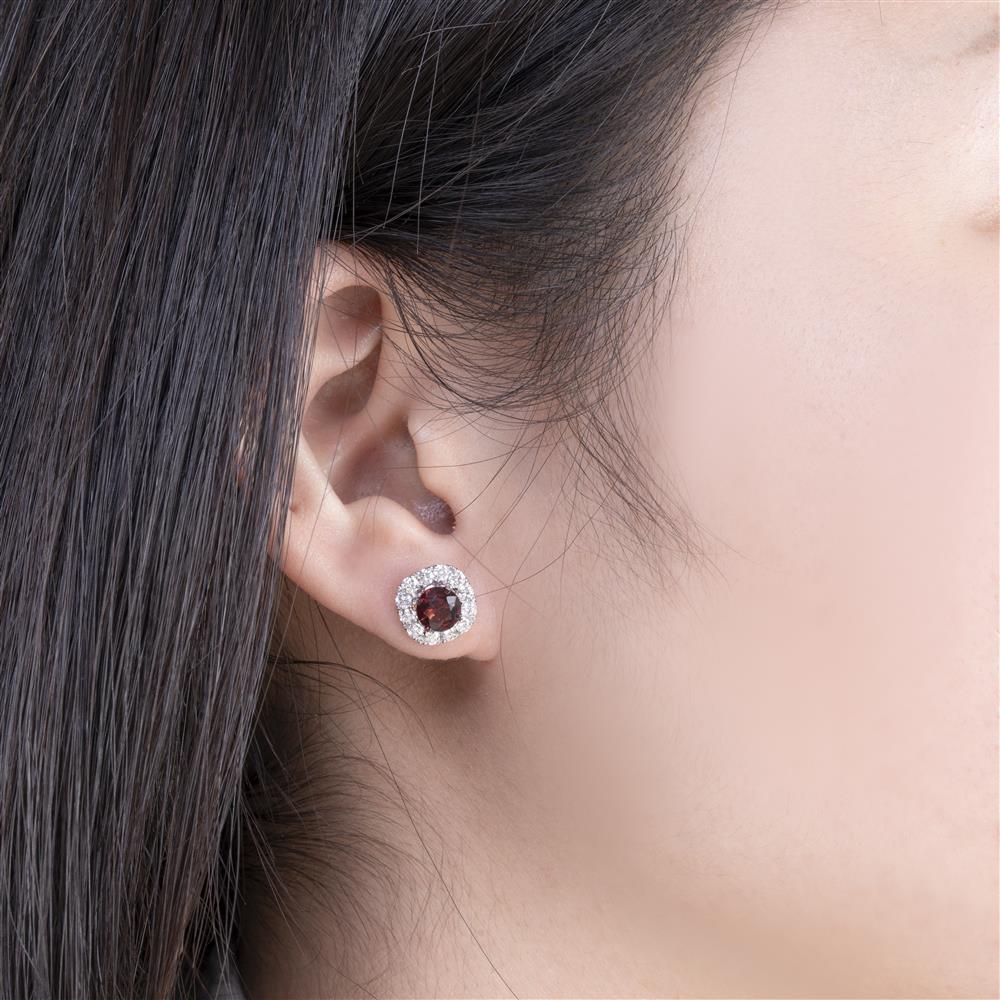 Với viên đá chủ màu đỏ ruby đậm quyến rũ, được bao quanh bởi những viên kim cương tấm lấp lánh, tạo nên hiệu ứng tỏa sáng rực rỡ.
