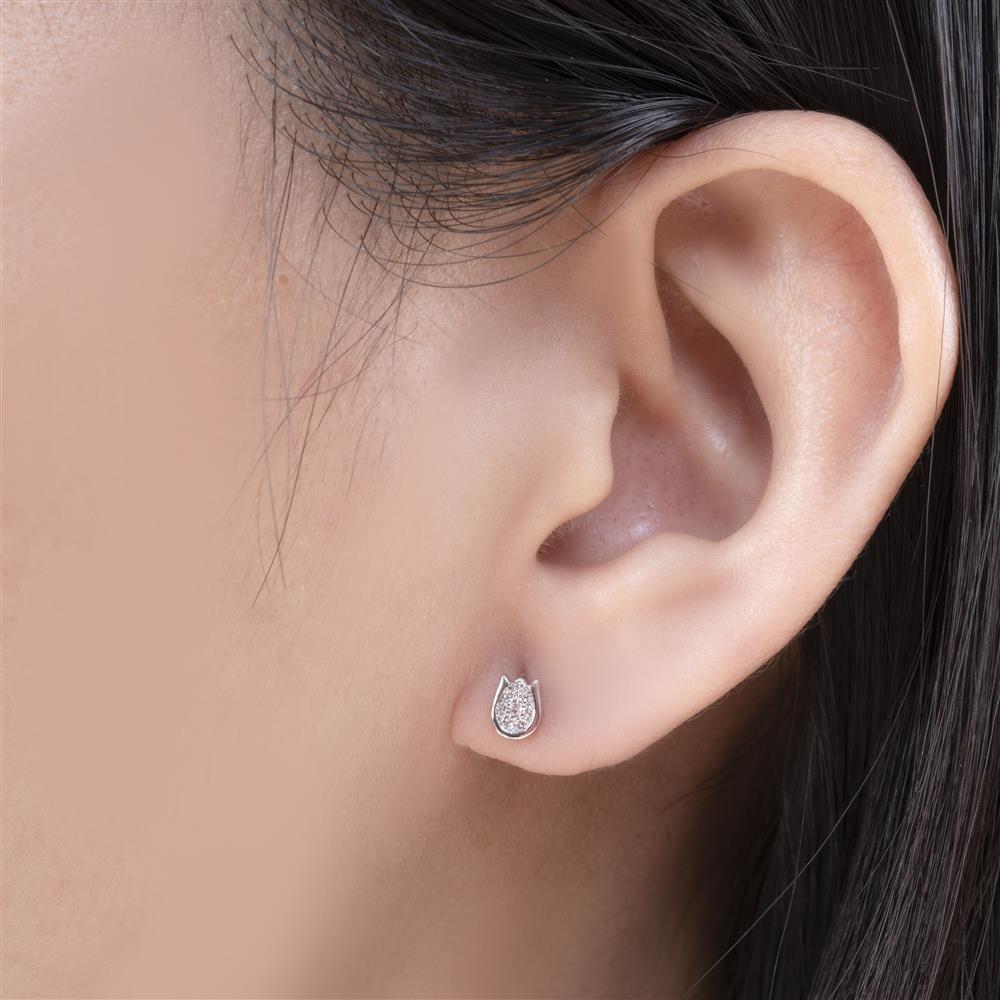 Một thiết kế đầy chất nghệ thuật dành cho những cô gái yêu sự tinh tế nhưng không muốn hòa lẫn vào đám đông. Đôi bông tai mang phong cách asymmetric (bất đối xứng), kết hợp hai hình ảnh dịu dàng nhất của thiên nhiên: