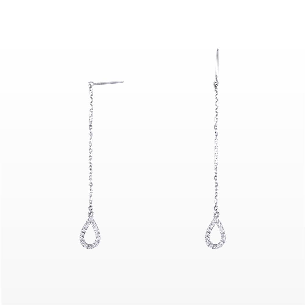 Bông tai dáng thả giọt nước mang vẻ đẹp thanh thoát và tinh tế, tôn lên nét nữ tính một cách nhẹ nhàng nhưng đầy cuốn hút. Phần mặt giọt nước được thiết kế mảnh mai, đính đá lấp lánh vừa đủ, kết hợp chuỗi thả dài uyển chuyển giúp gương mặt trông thon gọn và mềm mại hơn khi đeo.