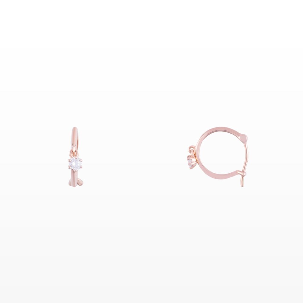 Đôi bông tai được thiết kế theo dáng vòng mảnh thanh lịch, kết hợp cùng viên kim cương nhỏ được thả nhẹ phía dưới tạo nên chuyển động mềm mại và tinh tế. Mỗi khi người đeo cử động, viên kim cương khẽ rung, phản chiếu ánh sáng lấp lánh đầy cuốn hút.