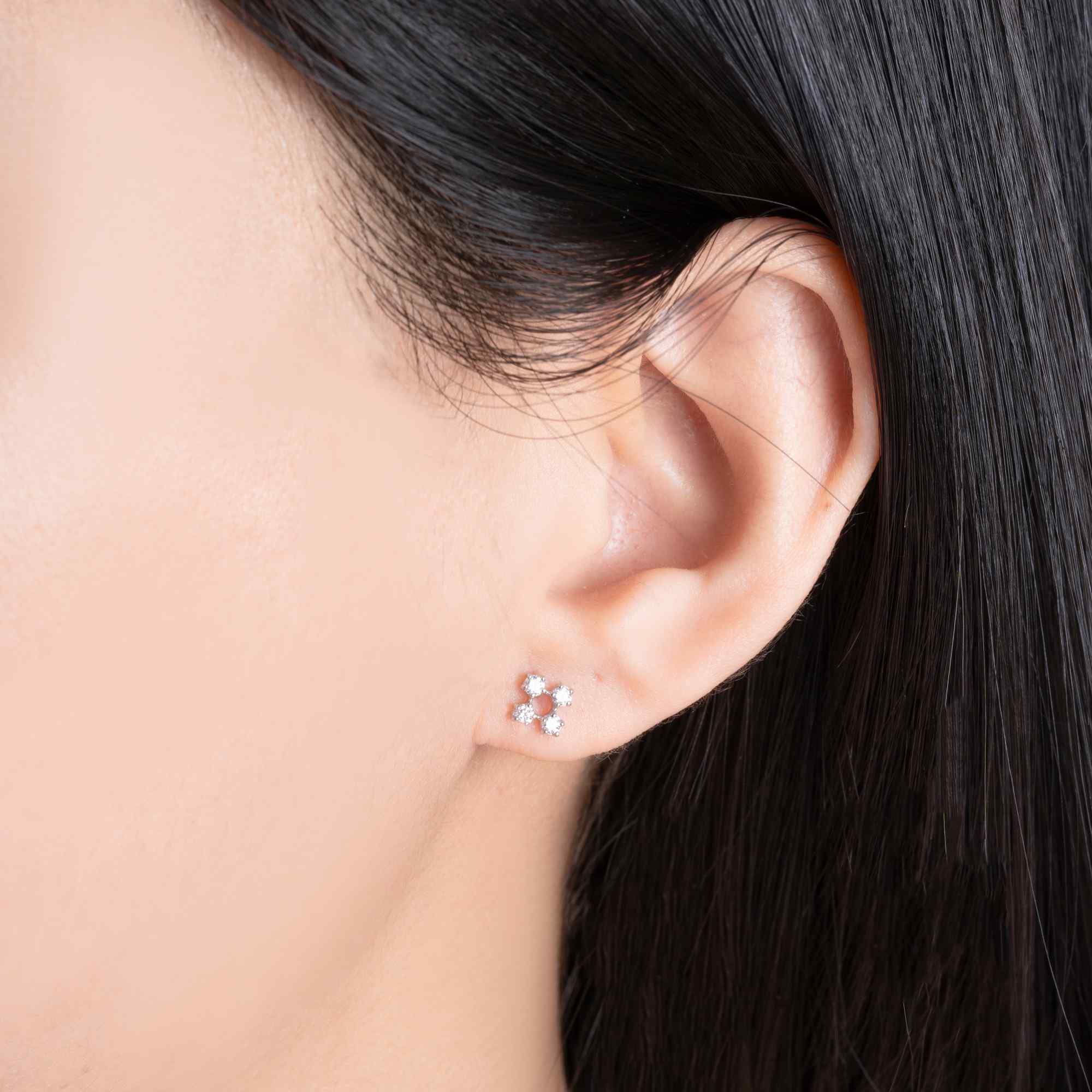 Nhẹ nhàng như một bông tuyết vừa chạm xuống, đôi bông tai mang vẻ đẹp thuần khiết và trong trẻo. Những viên kim cương nhỏ được sắp xếp thành hình hoa tuyết xinh xắn, tạo nên tổng thể hài hòa và lấp lánh đầy duyên dáng.