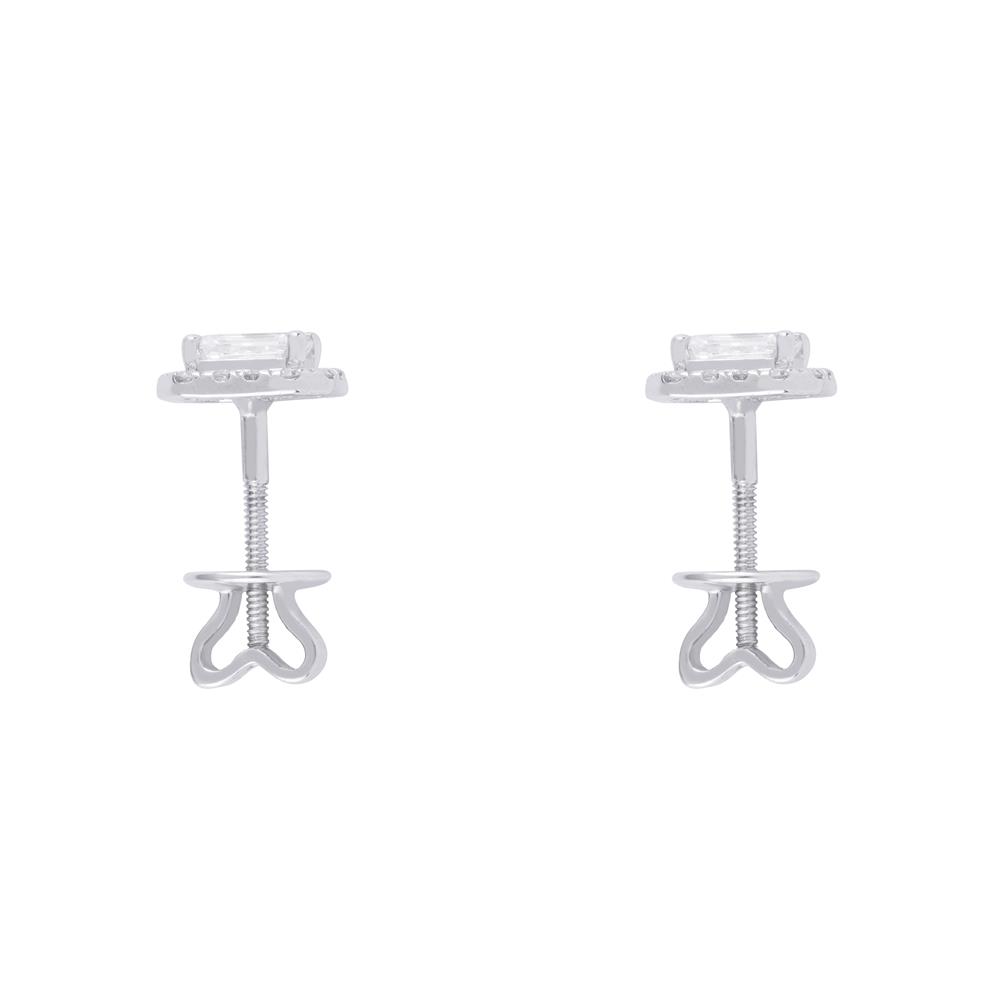 Đôi bông tai kim cương mang thiết kế dáng chữ nhật tinh tế, nổi bật với viên kim cương cắt emerald ở trung tâm, được bao quanh bởi dải kim cương nhỏ lấp lánh. Kiểu dáng gọn gàng, đường nét sắc sảo giúp tôn lên vẻ đẹp hiện đại, sang trọng và đẳng cấp.