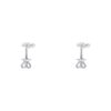 Đôi bông tai kim cương vàng trắng mang thiết kế mềm mại như một làn sóng ôm trọn viên kim cương ở trung tâm, gợi cảm giác nâng niu và che chở. Đường nét uốn lượn tinh tế tạo nên vẻ đẹp hiện đại nhưng rất đỗi nữ tính, như cảm xúc được vuốt ve nhẹ nhàng bên tai.