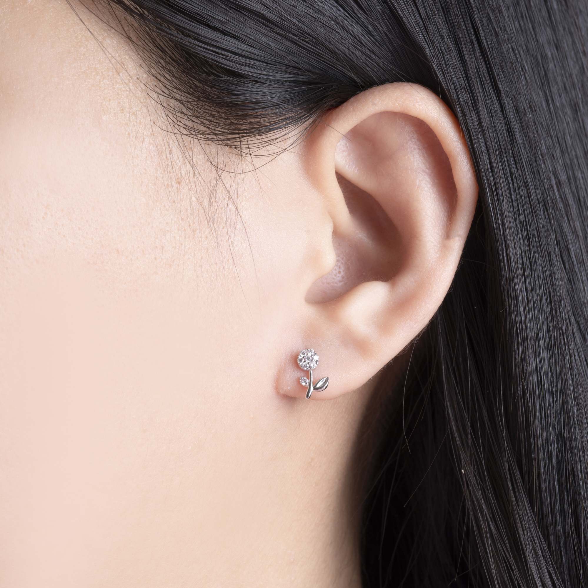 Bông tai Kim cương cành hoa 416 HOA.BT16T12NUT11.W416