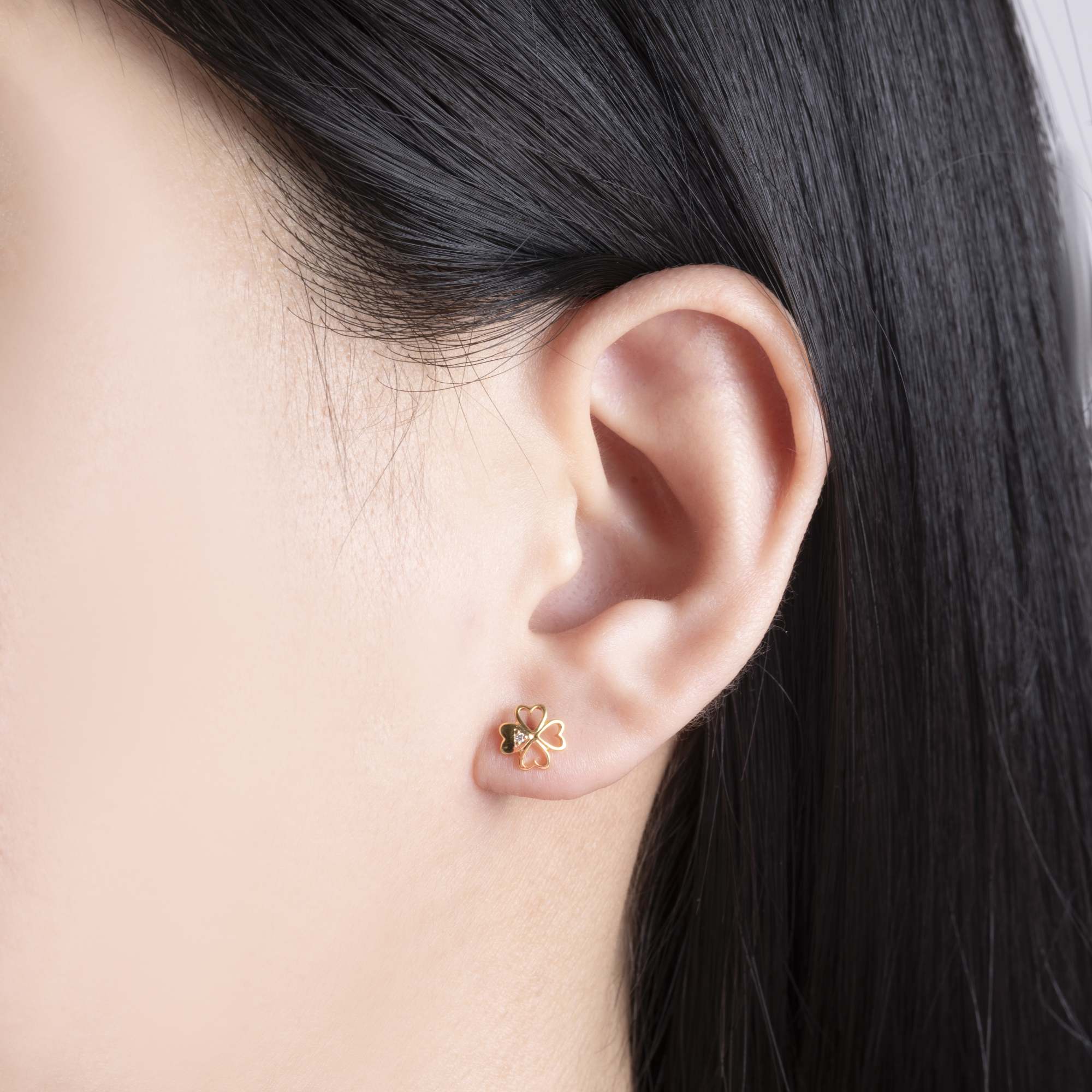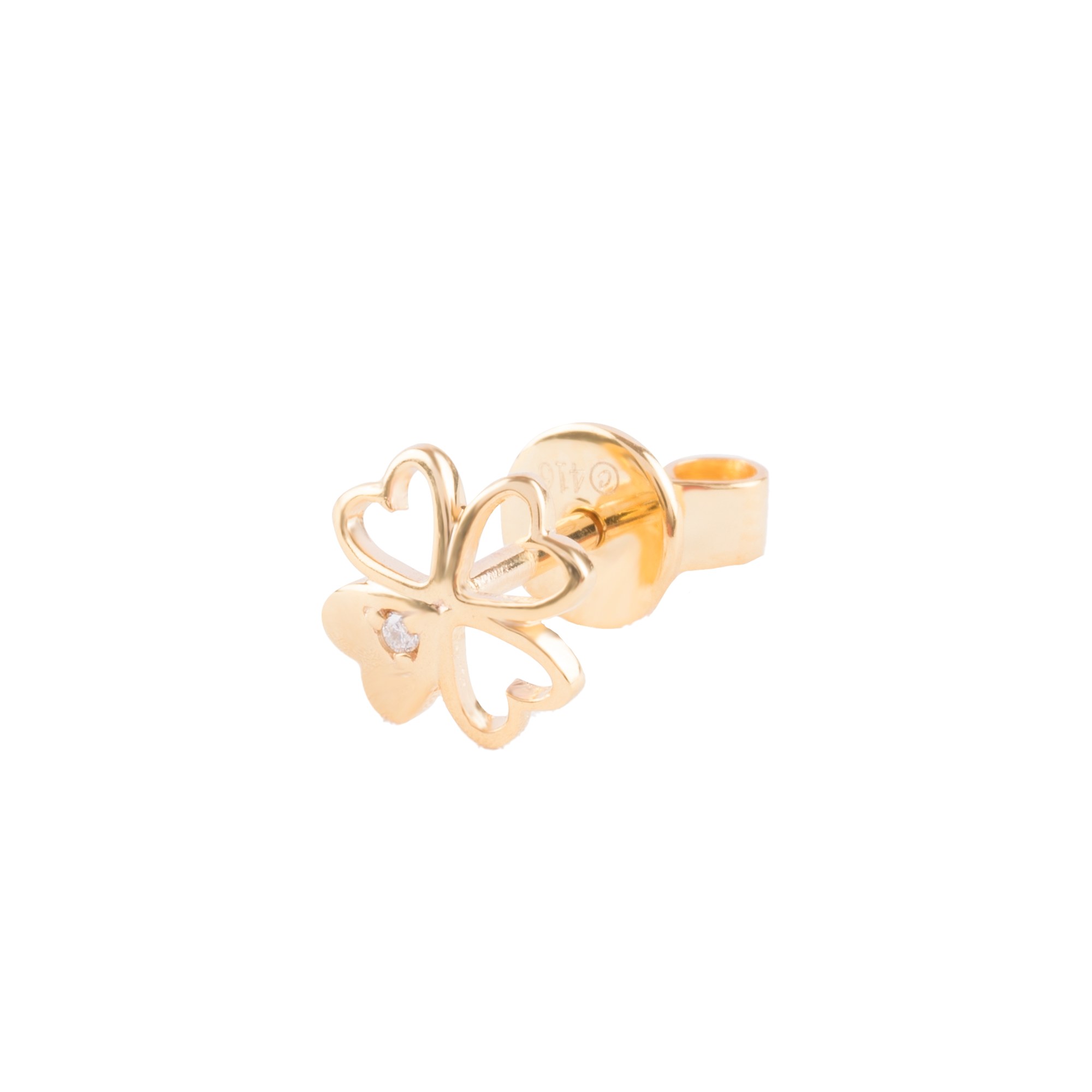 Bông tai lấy cảm hứng từ cỏ bốn lá – biểu tượng của may mắn và những điều tốt lành. Mỗi cánh lá đại diện cho niềm tin, hy vọng, tình yêu và hạnh phúc. Điểm xuyết viên kim cương lấp lánh ở trung tâm như ánh sáng dẫn lối, nhắc nàng luôn tự tin và đón nhận vận may theo cách thật riêng của mình.