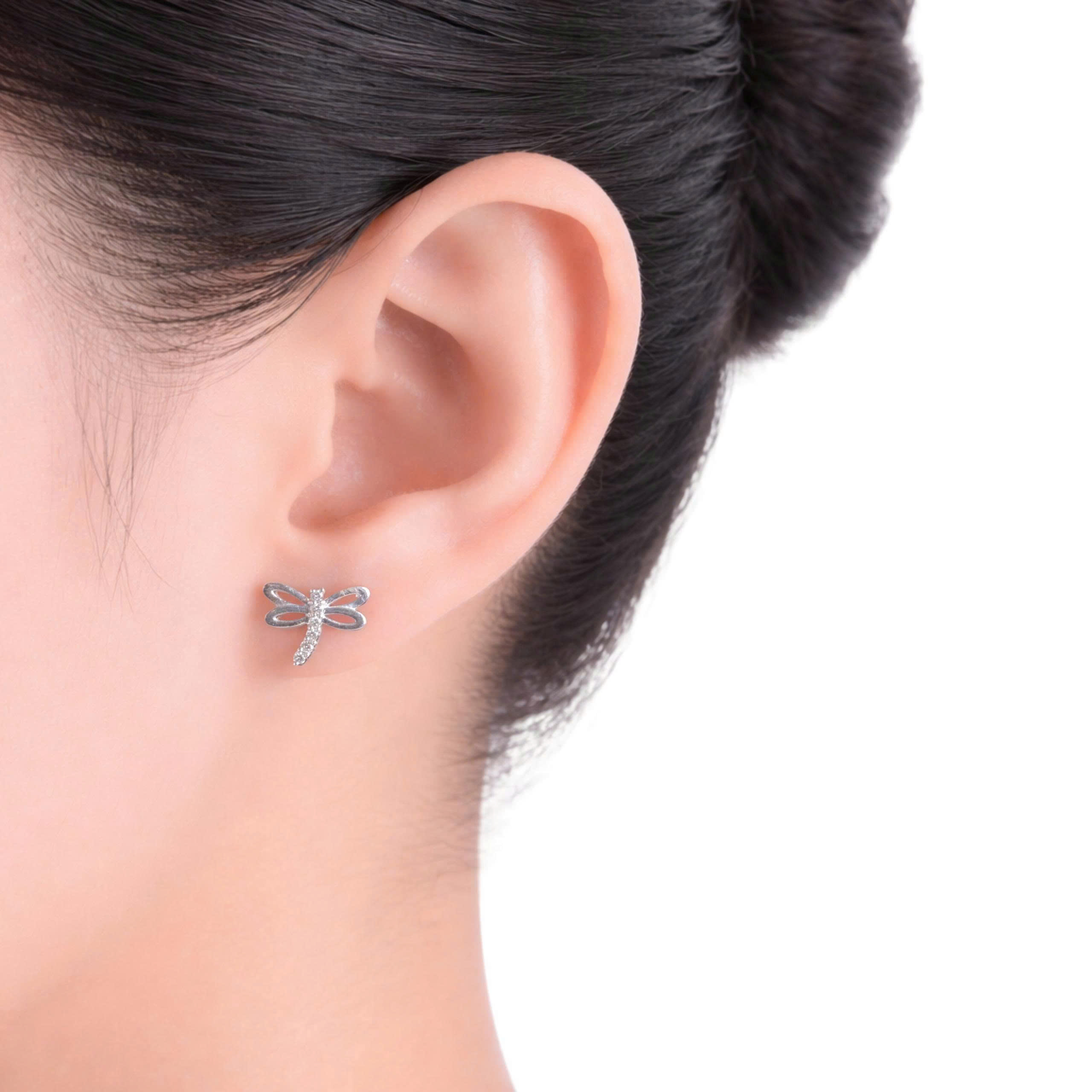 Đôi bông tai kim cương có thiết kế hình con chuồn chuồn mang vẻ đẹp tinh tế và thanh lịch. Hình ảnh con chuồn chuồn tượng trưng cho sự tự do, may mắn và sự chuyển mình.