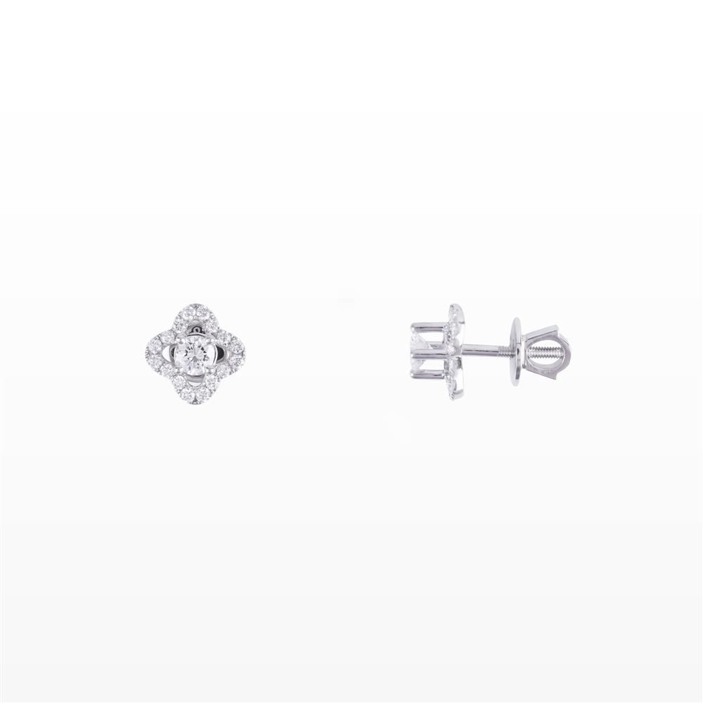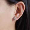 Bông tai kim cương được thiết kế theo dáng hoa 4 cánh đối xứng, nổi bật với viên kim cương chủ ở trung tâm, bao quanh bởi những viên kim cương nhỏ được đính kết tinh xảo. Tổng thể tạo hiệu ứng lấp lánh nhẹ nhàng, cân đối và sang trọng ở mọi góc nhìn.