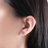 Thiết kế mô phỏng đóa hoa nhỏ, kết hợp từ những viên đá li ti được sắp xếp đối xứng thành vòng sáng tròn đầy. Khi gắn đá chủ vào giữa, toàn bộ bông tai sẽ tạo nên hiệu ứng halo – ánh sáng lan tỏa, giúp viên đá trung tâm rực rỡ hơn, lớn hơn và nổi bật hơn gấp nhiều lần.
