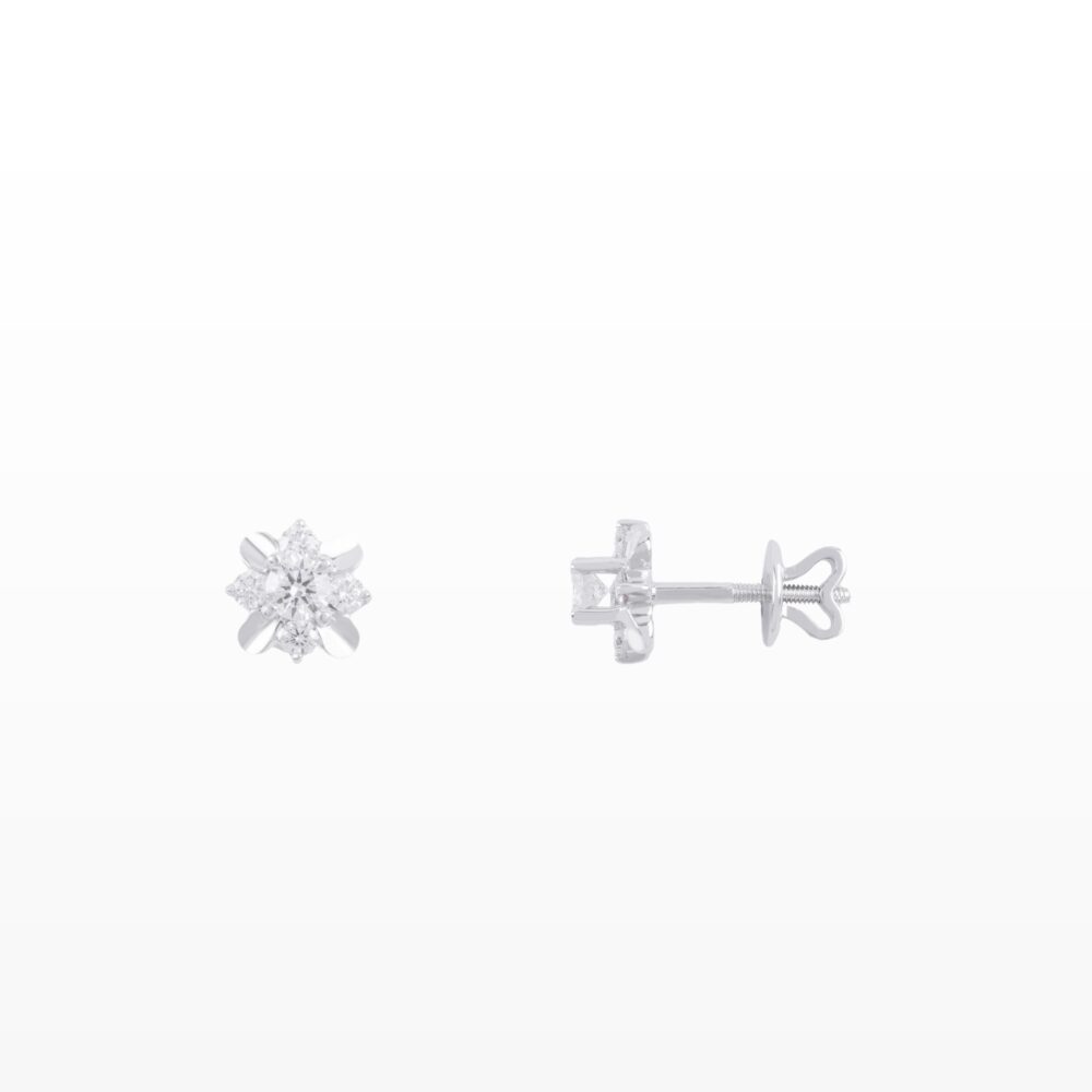 Bông tai kim cương thiết kế dáng hoa sao tinh xảo, với viên kim cương tròn ở trung tâm được bao quanh bởi các viên kim cương nhỏ sắp xếp đối xứng. Bố cục nhiều tia sáng giúp tăng hiệu ứng phản chiếu, tạo cảm giác lấp lánh nổi bật ở mọi góc nhìn. Thiết kế nhỏ gọn, thanh lịch, phù hợp để đeo hằng ngày nhưng vẫn giữ được vẻ sang trọng và tinh tế.