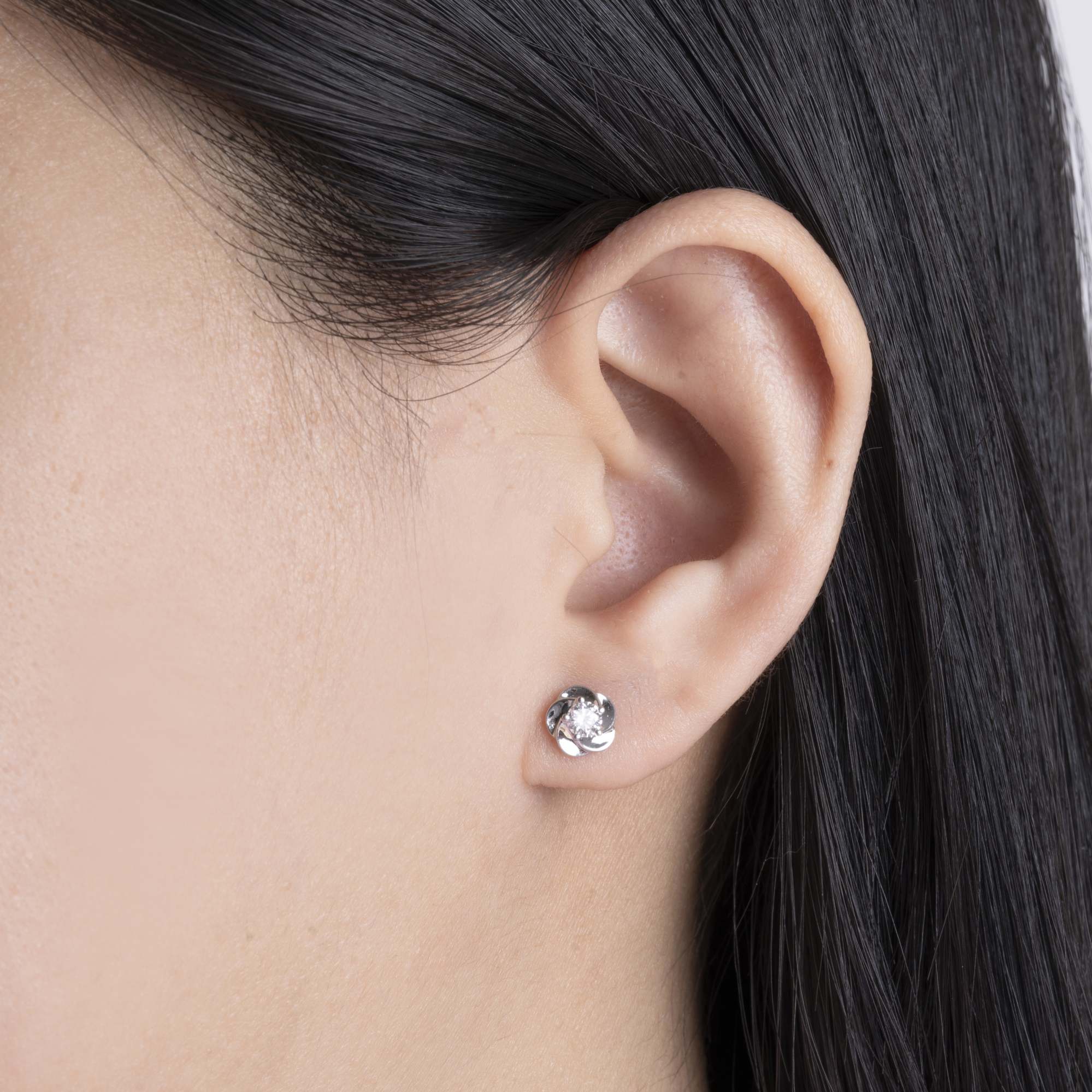 Đôi bông tai kim cương dáng xoắn tinh tế mang vẻ đẹp thanh lịch và hiện đại. Viên kim cương trung tâm được ôm trọn bởi những đường cong mềm mại, tạo hiệu ứng xoắn nhẹ đầy cuốn hút, giúp ánh sáng được phản chiếu rực rỡ từ mọi góc nhìn.