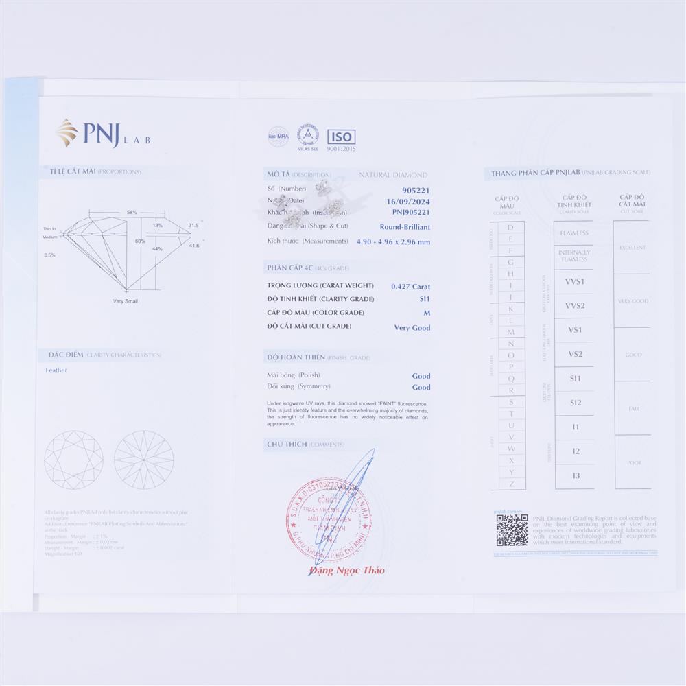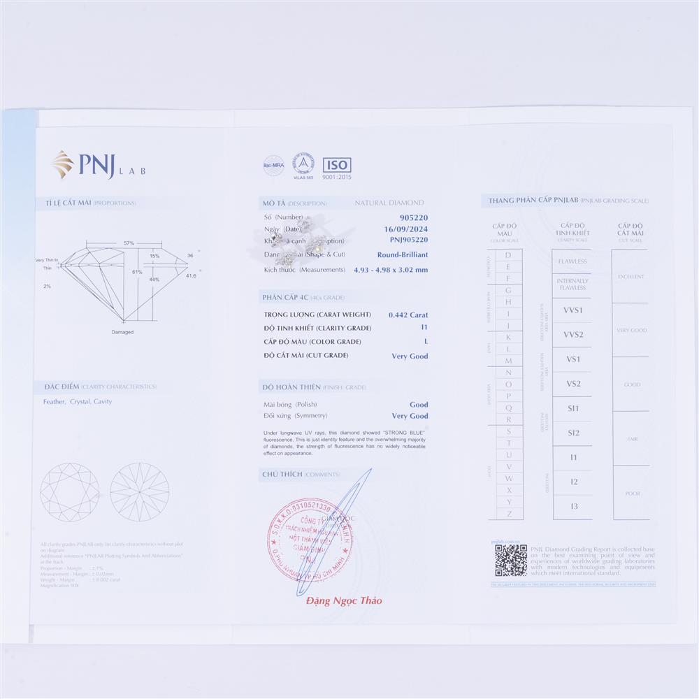 | Kim cương viên: | 4.90 - 4.96 LY M/SI1, 4.93 - 4.98 LY L/I1 |