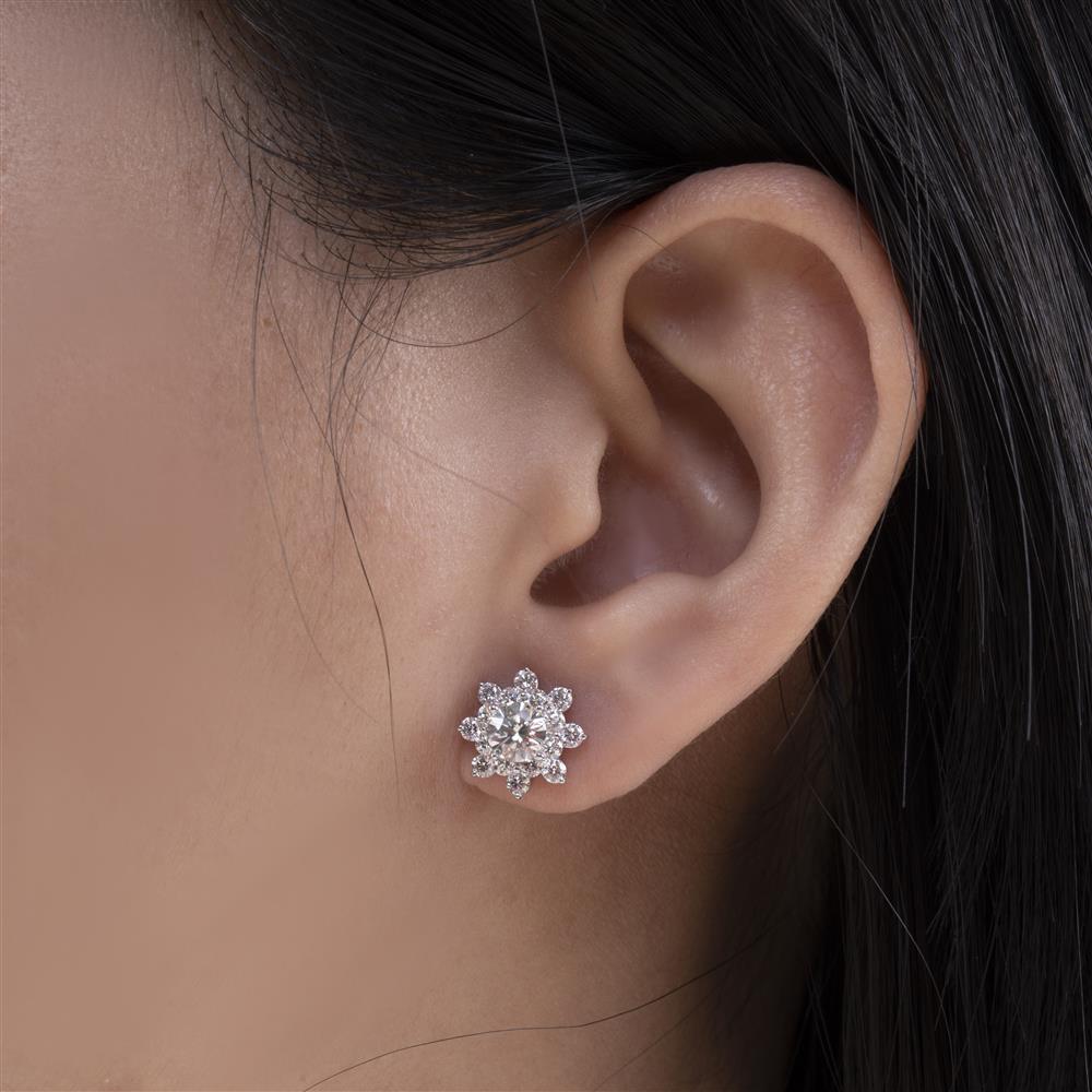 Rực rỡ như một bông hoa nở trọn vẹn trong ánh nắng, mẫu bông tai kim cương dáng Hoa 8 Cánh mang đến vẻ đẹp tinh xảo và đầy nữ tính. Viên kim cương trung tâm được tôn lên bằng 8 viên đá tấm bao quanh, tạo thành hiệu ứng “bùng nổ ánh sáng” – mỗi chuyển động đều phản chiếu những tia sáng lung linh khó cưỡng.