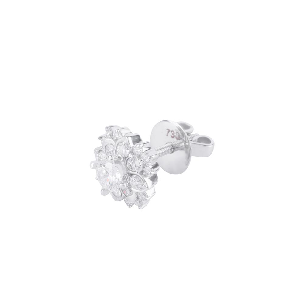 Từng cánh hoa được tạo hình tinh xảo, bao quanh viên kim cương chủ rực rỡ ở trung tâm, phản chiếu ánh sáng lung linh như đóa hoa đang nở trong buổi bình minh.