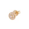 Thiết kế dạng tròn với họa tiết xoắn viền tinh xảo, tâm điểm là những viên kim cương nhỏ lấp lánh sắp xếp hài hòa, tạo hiệu ứng tỏa sáng lung linh. Sự kết hợp khéo léo giữa nét cổ điển và hiện đại mang đến vẻ đẹp sang trọng, tinh tế. Đây là phụ kiện lý tưởng để tôn vinh phong cách thanh lịch và đầy cuốn hút.