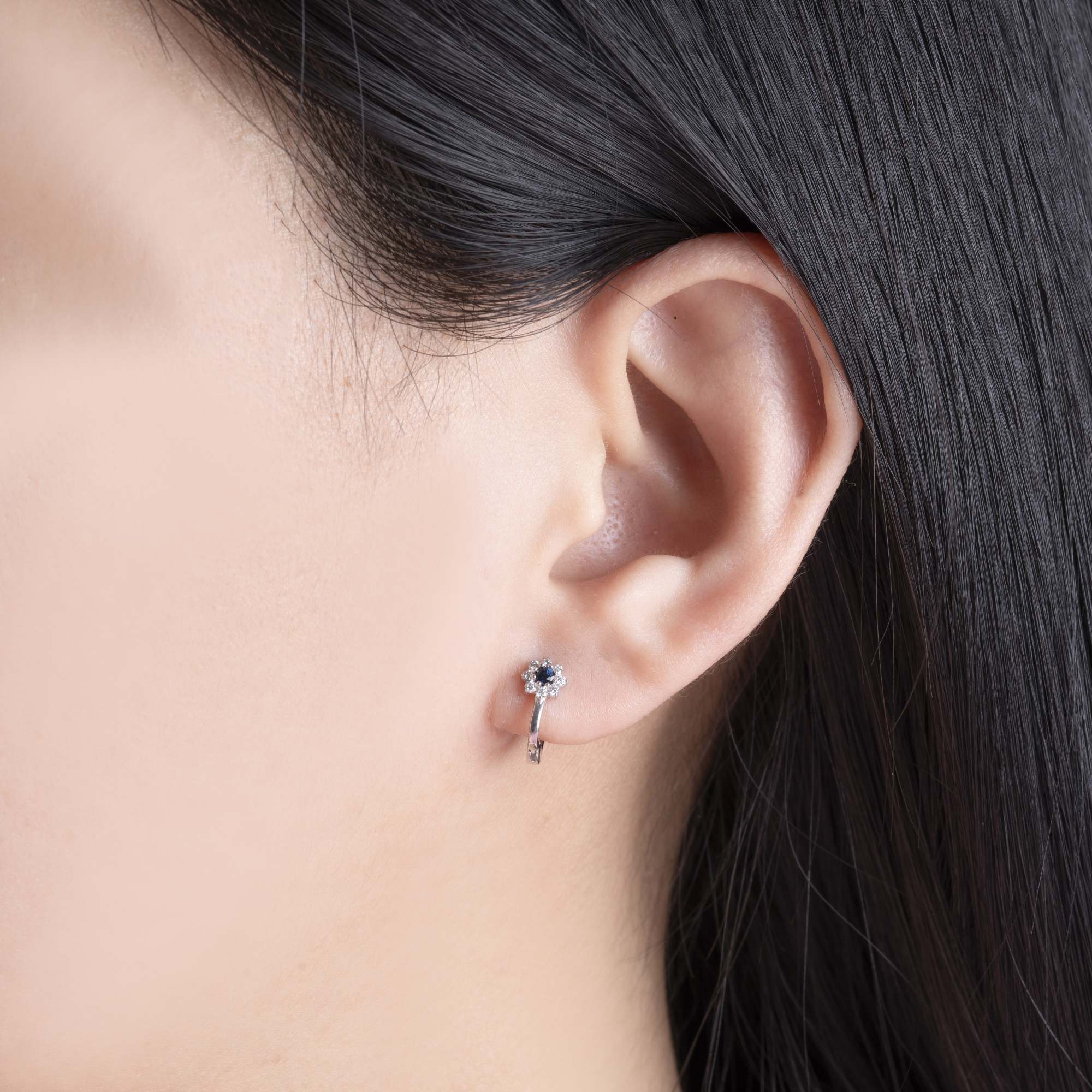 Thiết kế ôm sát tai, kích thước nhỏ gọn, phù hợp để đeo hằng ngày nhưng vẫn đủ nổi bật cho những dịp đặc biệt. Sự kết hợp giữa sắc xanh và ánh kim cương không chỉ tạo điểm nhấn thị giác mà còn gợi lên cảm giác thanh lịch, hiện đại và đầy nữ tính.