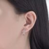 Bông tai thiết kế dáng khuyên hiện đại, nổi bật với cấu trúc hai lớp tinh tế tạo chiều sâu thị giác đầy cuốn hút. Một dải kim cương tấm được đính đều tay chạy dọc theo khuyên, kết hợp cùng hàng đá tròn lớn hơn sắp xếp song song, mang lại hiệu ứng lấp lánh đa tầng khi chuyển động