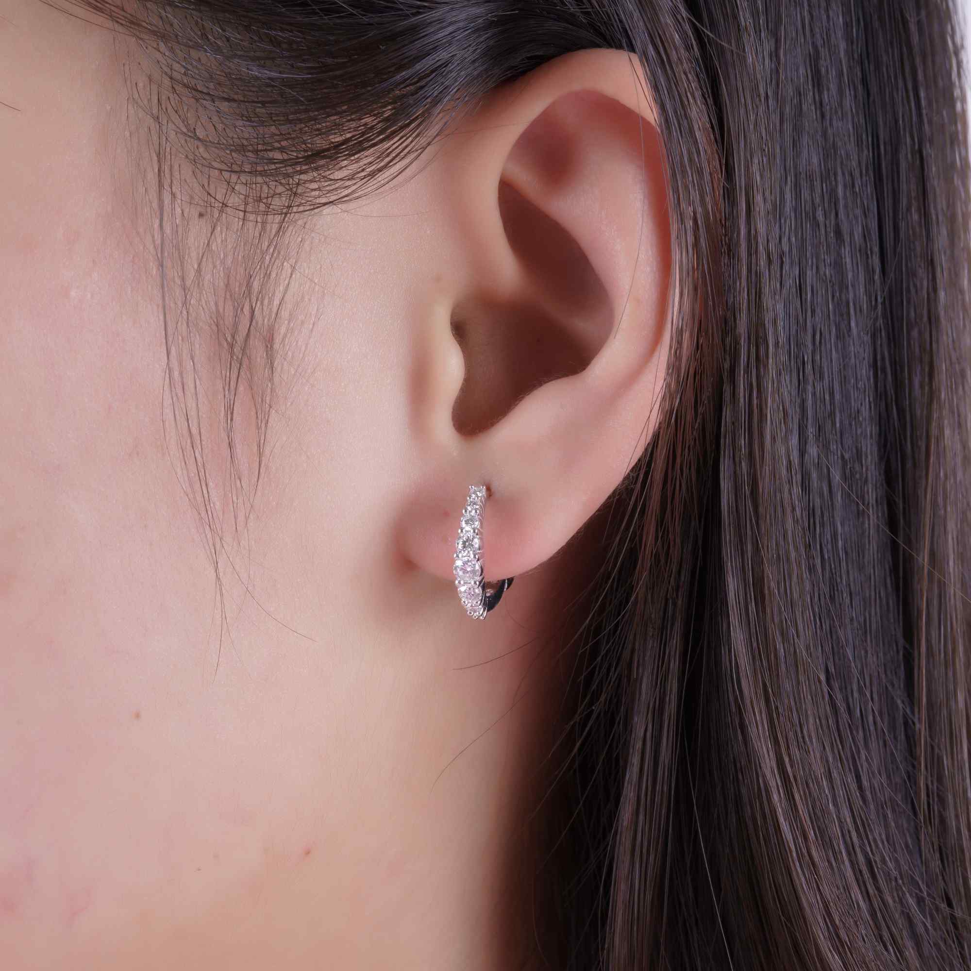 Bông tai kim cương vàng trắng thiết kế ôm tai thanh mảnh, đính dãy kim cương lấp lánh được sắp xếp tinh tế. Kiểu dáng hiện đại, nhẹ nhàng nhưng vẫn nổi bật, giúp gương mặt thêm rạng rỡ. Phù hợp đeo hằng ngày hoặc kết hợp cùng trang sức kim cương đồng bộ.