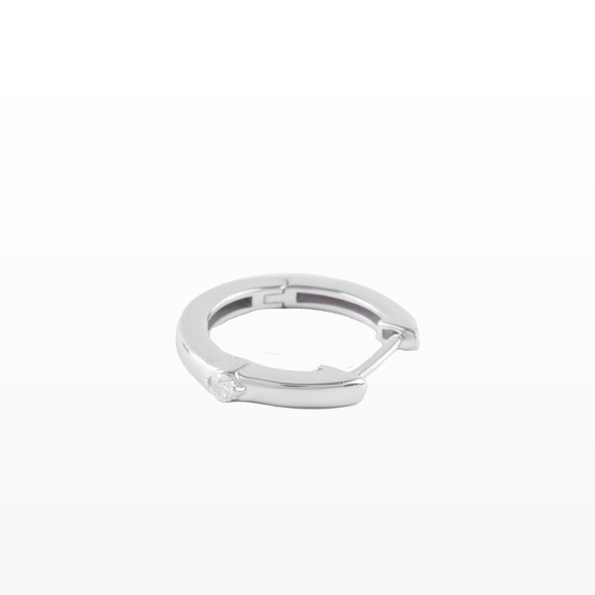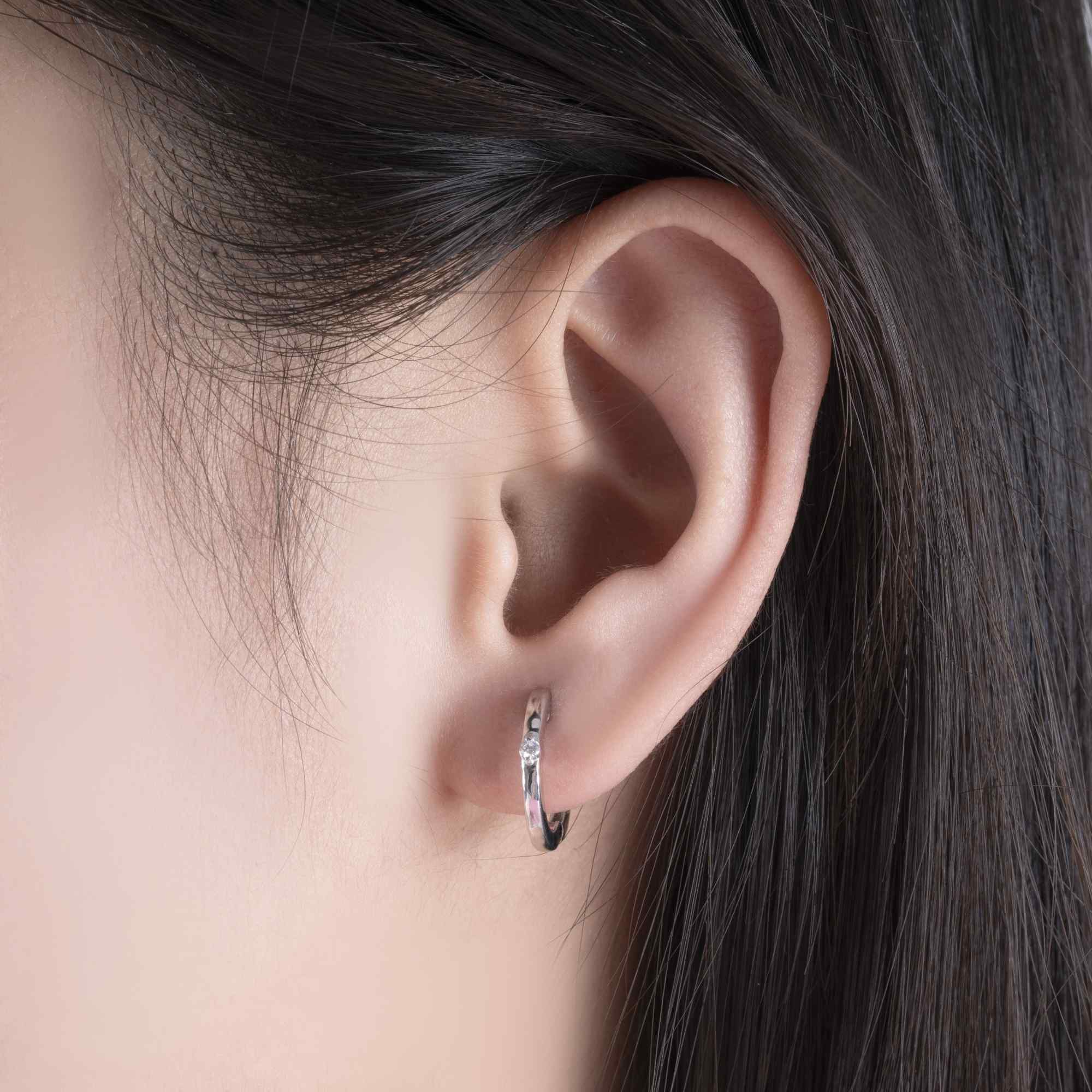 Dáng khuyên tròn mảnh mai, bề mặt được hoàn thiện trơn mịn, điểm xuyết một viên kim cương nhỏ tinh tế ở chính giữa. Chỉ một ánh chạm rất khẽ, nhưng đủ để ánh sáng lan tỏa theo cách dịu dàng và thuần khiết. Sự tối giản ấy không hề đơn điệu, mà gợi nên vẻ đẹp trưởng thành, thanh lịch và đầy tự tin của người phụ nữ hiện đại.