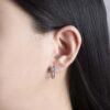 Bông tai thiết kế dáng khuyên hiện đại, kết hợp điểm nhấn mặt đá tròn nổi bật ở phía trước, tạo nên tổng thể vừa thanh lịch vừa cuốn hút. Viên đá chủ được đặt cao với hệ chấu tinh gọn, giúp tối đa hóa khả năng bắt sáng, mang lại hiệu ứng lấp lánh rực rỡ.
