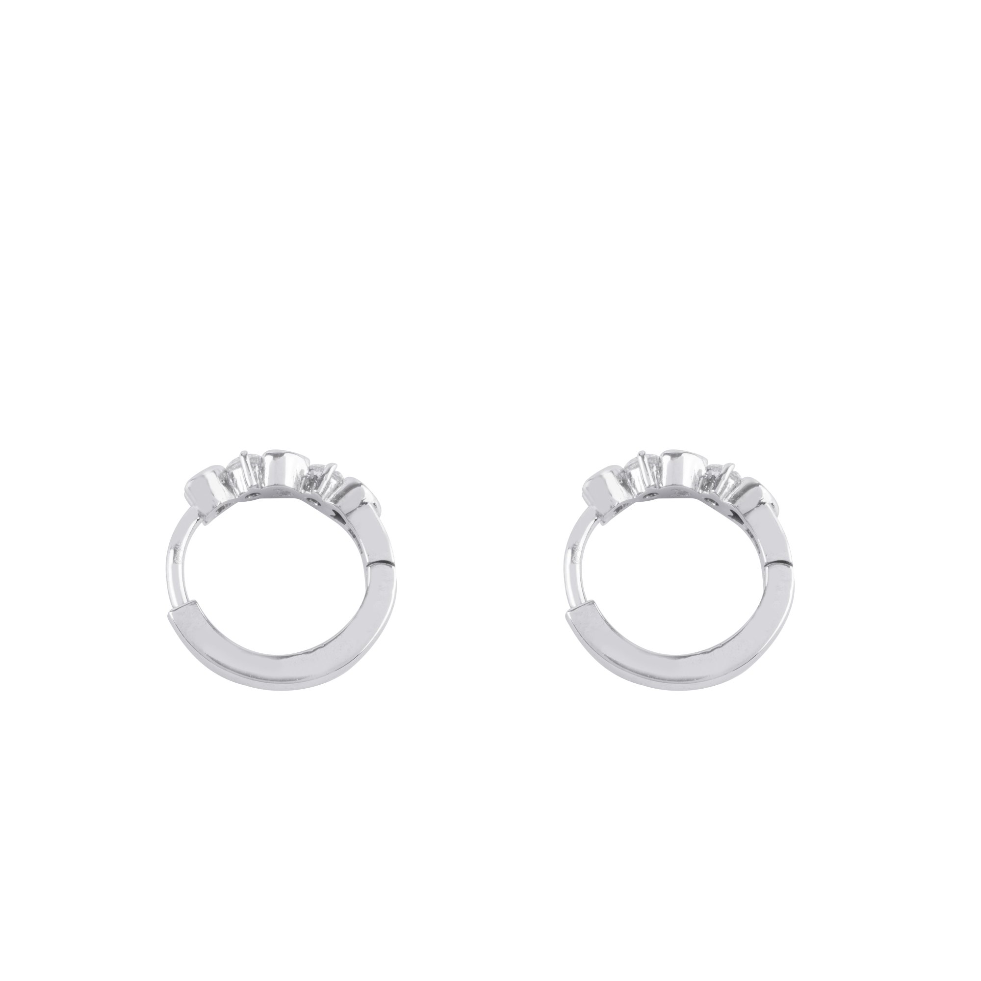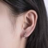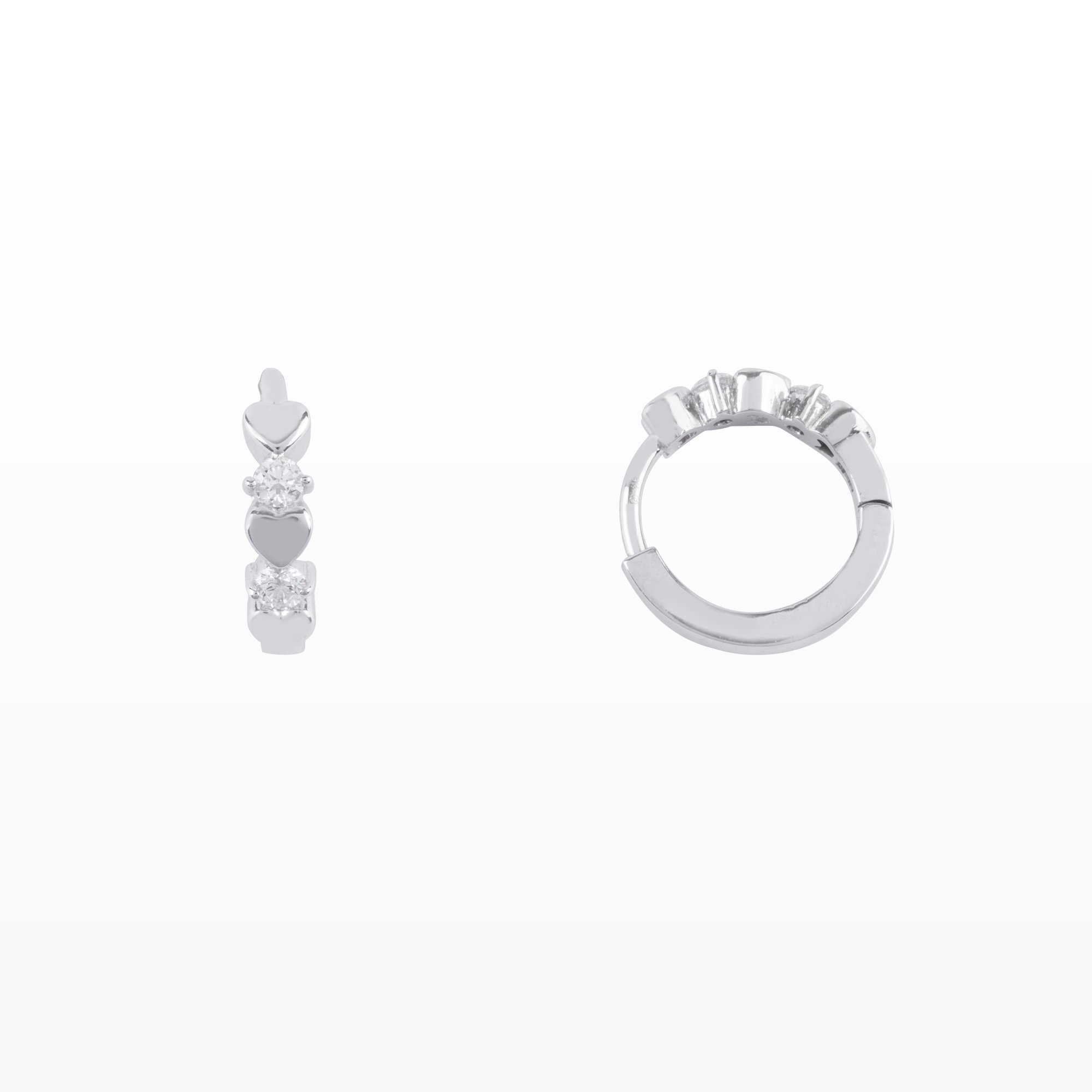 Thiết kế bông tai dạng vòng nhỏ gọn kết hợp họa tiết trái tim xen kẽ kim cương mang đến vẻ đẹp vừa ngọt ngào vừa hiện đại. Những viên kim cương được đính khéo léo giữa các trái tim mềm mại, tạo điểm nhấn lấp lánh tinh tế theo từng chuyển động, như những nhịp đập yêu thương không ngừng.