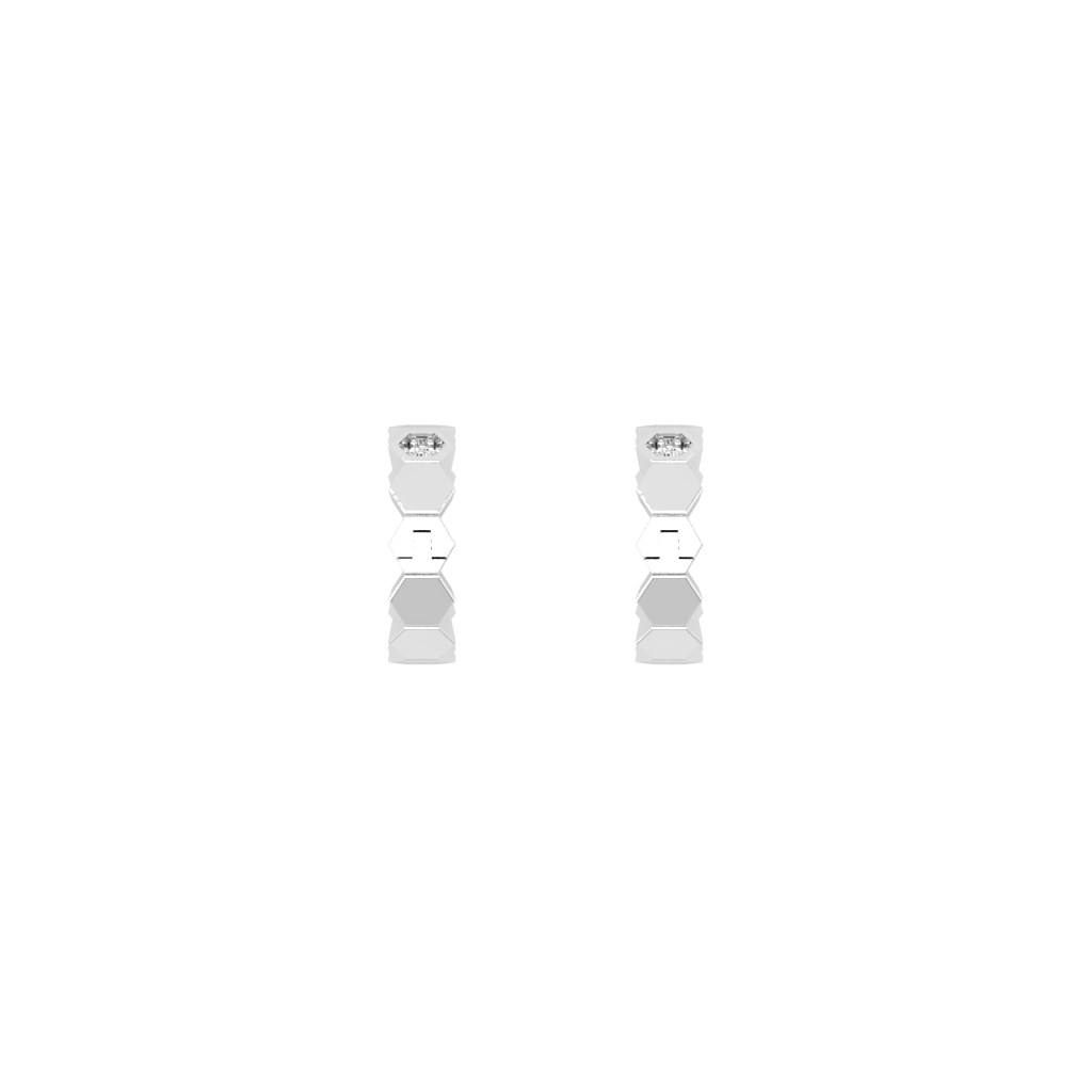 Những viên kim cương nhỏ được đặt xen kẽ giữa các mảng kim loại vàng hồng, tạo nên nhịp điệu ánh sáng rất riêng: không dày đặc, nhưng đủ để bắt sáng và tạo chiều sâu. Các mặt phẳng được xử lý sắc nét, giúp tổng thể trở nên mạnh mẽ, cá tính hơn so với kiểu bông tròn truyền thống.