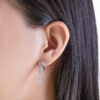 Thiết kế bông tai lấy cảm hứng từ đóa hoa đang khoe sắc, kết hợp khéo léo giữa những cánh hoa đính kim cương tấm tỏa sáng rực rỡ. Dáng tai thanh mảnh ôm nhẹ theo vành tai, giúp gương mặt thêm phần thanh thoát và quyến rũ.