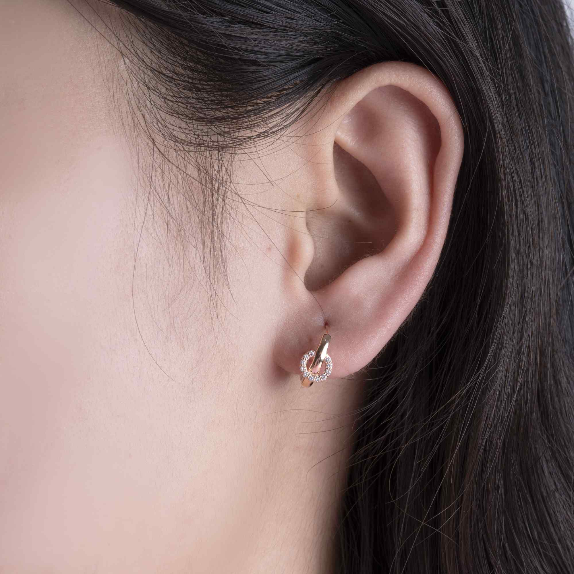 Thiết kế bông tai dạng vòng nhỏ xinh kết hợp điểm nhấn vòng tròn kim cương mang đến cảm giác mềm mại, hiện đại và đầy nữ tính. Những viên kim cương được đính tỉ mỉ theo dáng tròn hoàn hảo, tạo hiệu ứng lấp lánh nhẹ nhàng như ánh sáng dịu dàng ôm trọn gương mặt.
