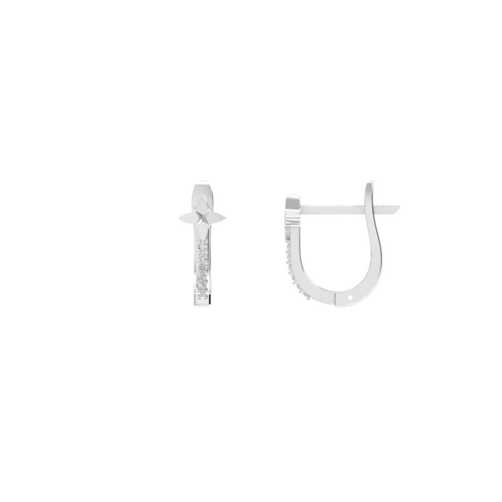 Bông tai kim cương thiết kế ngôi sao mang vẻ đẹp hiện đại và tinh tế. Điểm nhấn là biểu tượng ngôi sao nhỏ xinh ở đỉnh, kết hợp dải kim cương đính dọc thân tạo hiệu ứng lấp lánh đầy cuốn hút. Kiểu dáng thanh mảnh cùng cơ chế khóa chắc chắn giúp tôn lên nét nữ tính và sang trọng, là lựa chọn hoàn hảo để nàng tỏa sáng mỗi ngày.