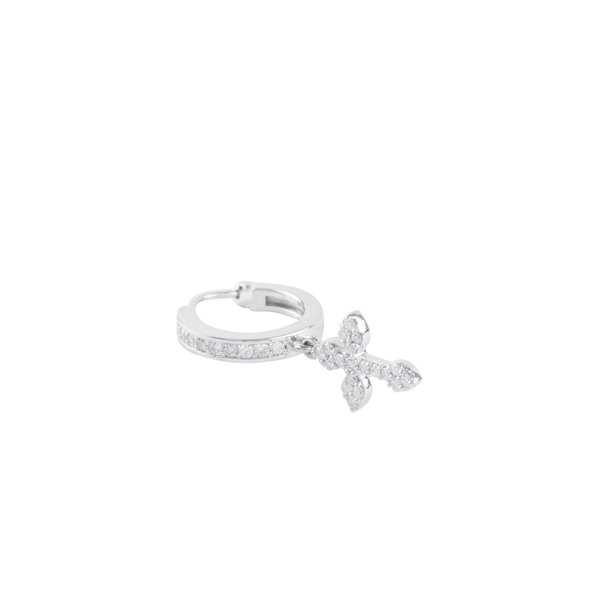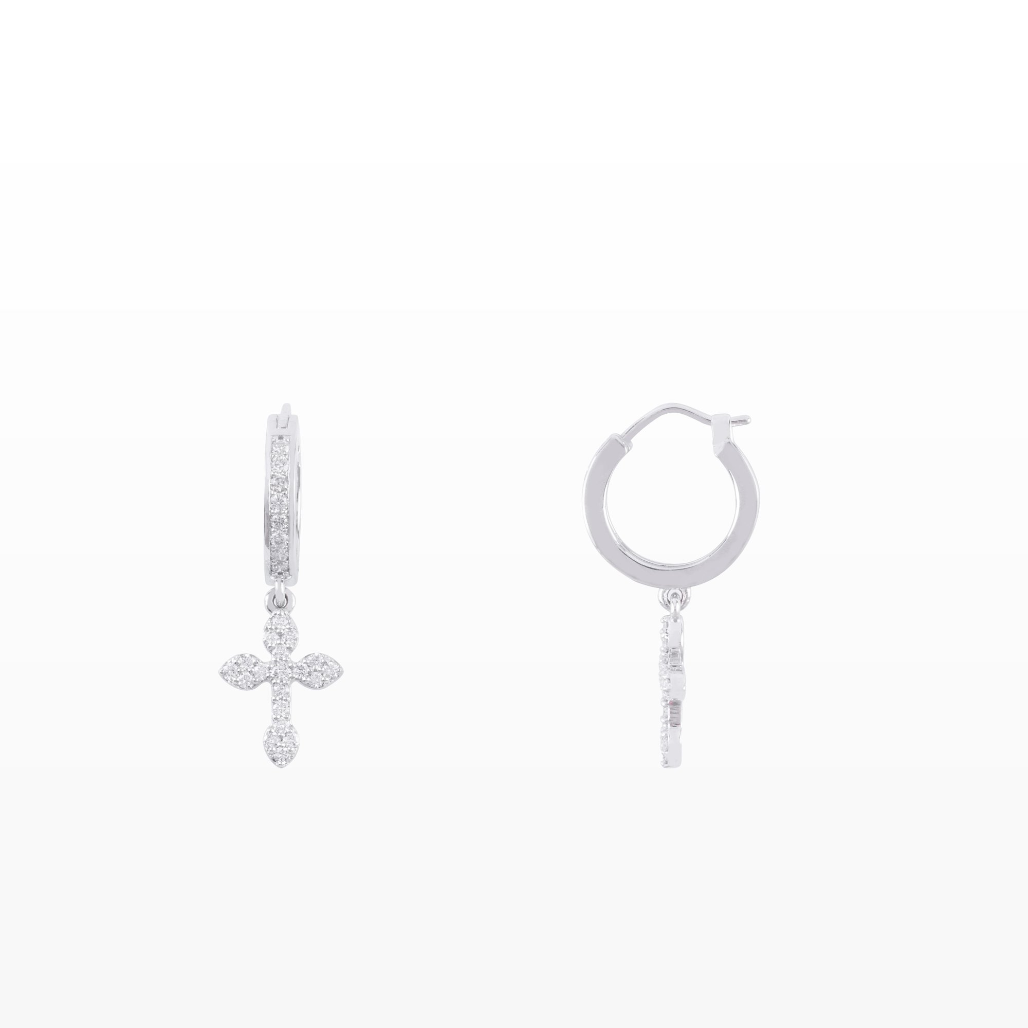 Thiết kế thánh giá thanh mảnh, đính kim cương lấp lánh nhẹ nhàng như một lời chúc bình an luôn kề bên. Không phô trương, không cầu kỳ, đôi bông tai mang vẻ đẹp tinh khiết và ý nghĩa sâu sắc – biểu tượng của niềm tin, sự che chở và những điều tốt lành.