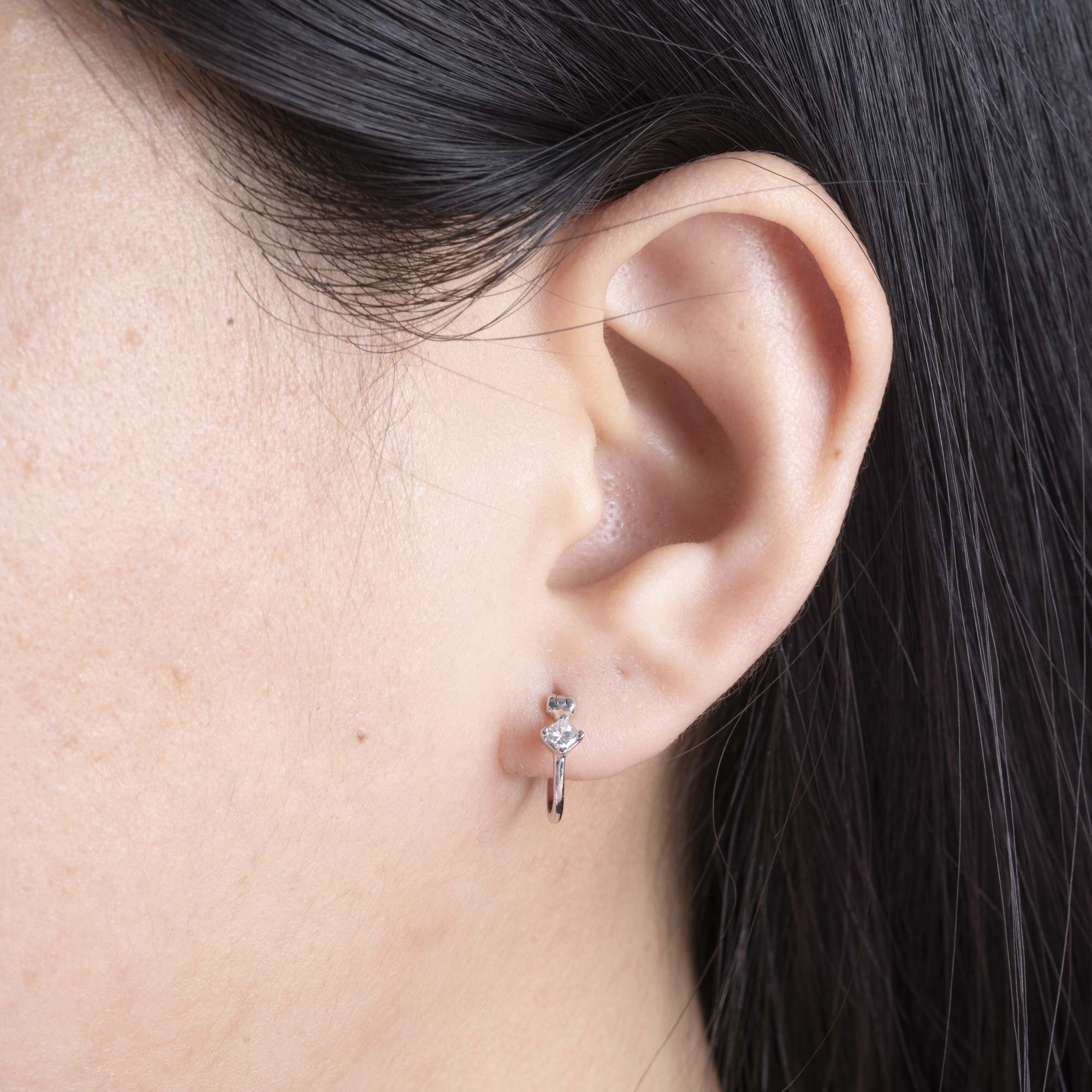 Đôi bông tai kim cương em bé mang thiết kế nhỏ xinh và đầy yêu thương. Điểm nhấn là viên kim cương ở trung tâm tỏa sáng nhẹ nhàng, kết hợp cùng chi tiết đáng yêu phía dưới tạo nên vẻ ngọt ngào và tinh tế.