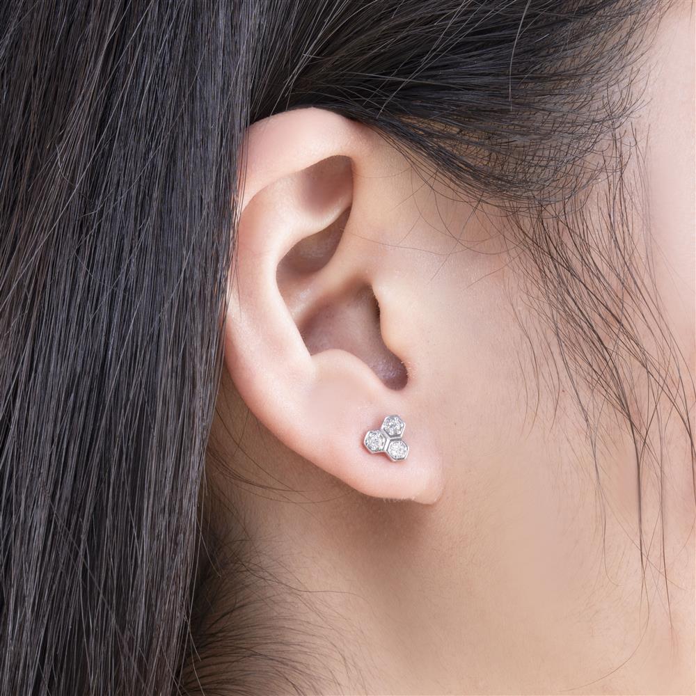 Với thiết kế độc đáo gồm ba viên kim cương xếp liền nhau trong khung lục giác tinh xảo, tượng trưng cho sự cân bằng, thịnh vượng và may mắn.