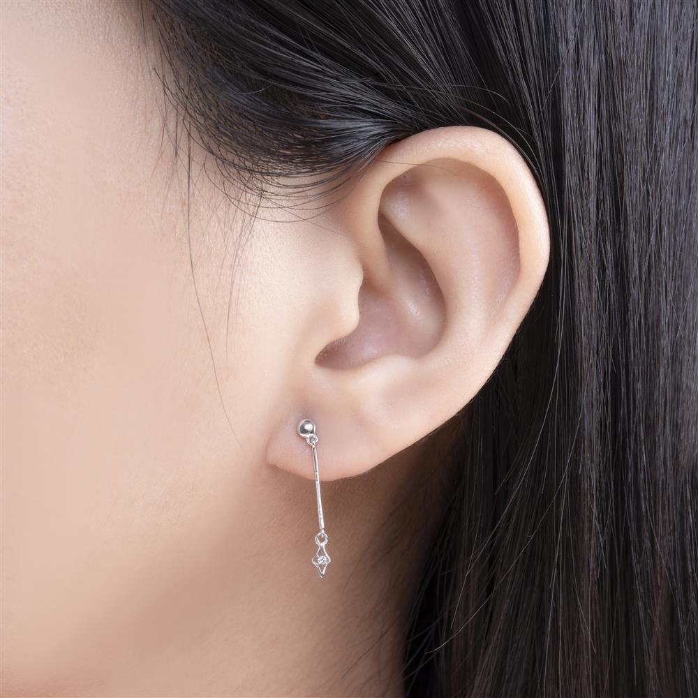 Bông tai dáng thanh dài tối giản, điểm xuyến một viên kim cương nhỏ ở cuối tạo hiệu ứng lấp lánh nhẹ nhàng. Thiết kế mảnh mai, tinh tế và cực kỳ thanh lịch — mang đến vẻ đẹp hiện đại, nhẹ nhàng mà vẫn đủ cuốn hút để nàng nổi bật ở mọi góc nhìn.
