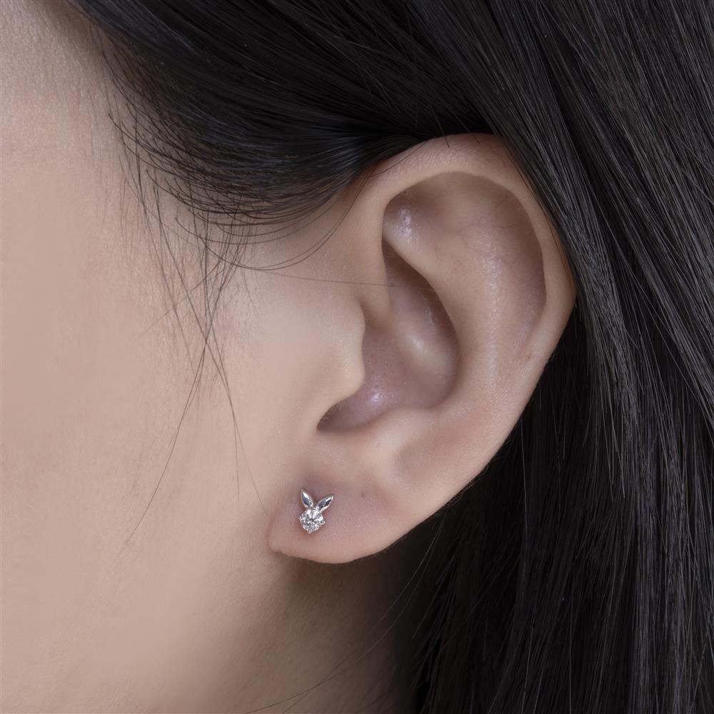Đôi bông tai kim cương hình tai thỏ mang thiết kế trẻ trung, tinh nghịch nhưng vẫn giữ được nét thanh lịch. Viên kim cương sáng trong ở giữa được ôm trọn bởi hai cánh tai thỏ mềm mại, tạo điểm nhấn độc đáo và cuốn hút.