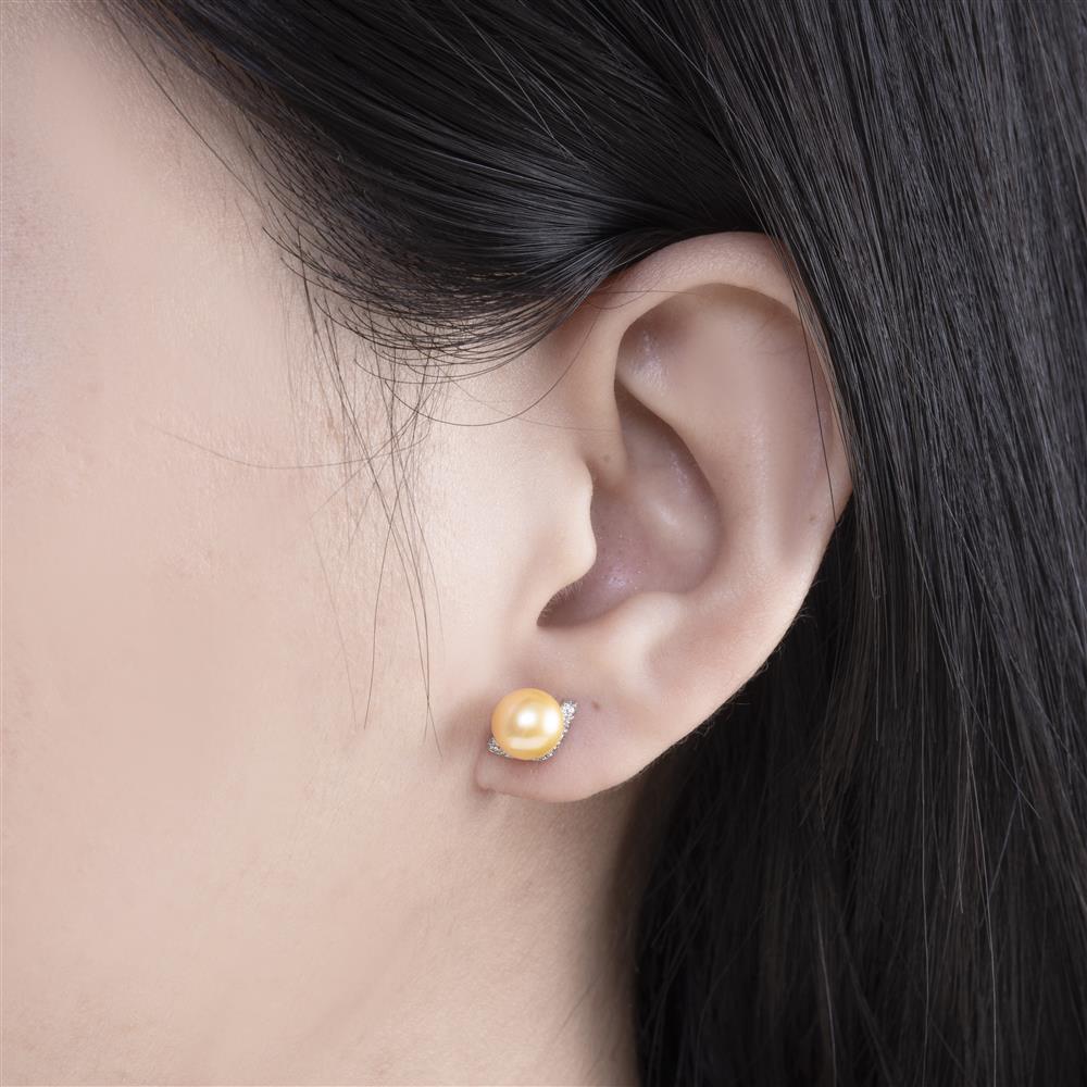 Tỏa sáng với vẻ đẹp thanh tao của ngọc trai – biểu tượng của sự tinh khiết và dịu dàng. Thiết kế nụ ôm nhẹ được viền kim cương tấm lấp lánh tạo nên điểm nhấn sang trọng, giúp tôn lên đường nét mềm mại của khuôn mặt.