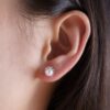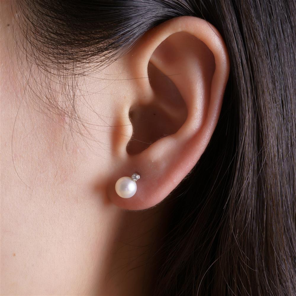 Đôi bông tai mang sắc trắng tinh khôi, nổi bật với ngọc trai tròn mịn – biểu tượng vượt thời gian của sự thuần khiết, nữ tính và vẻ đẹp nội tâm. Viên ngọc trai được nâng niu trong khung kim loại trắng sáng tạo hình mềm mại như cánh hoa ôm trọn, gợi cảm giác được chở che và trân quý. Ở một bên, điểm nhấn kim cương nhỏ lấp lánh nhẹ nhàng tỏa sáng, như ánh sáng tinh tế tô điểm cho nét đẹp tự nhiên.