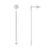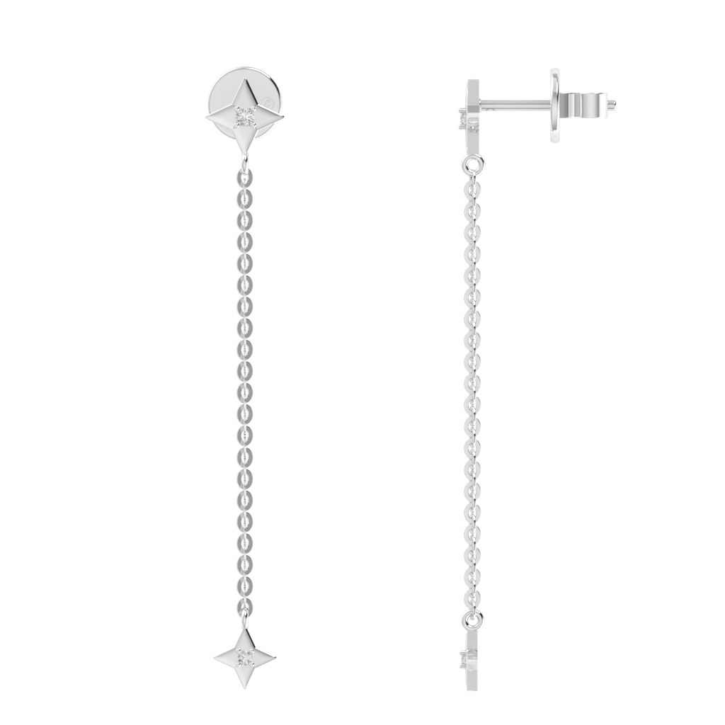 Đôi bông tai kim cương dáng thả ngôi sao mang vẻ đẹp thanh thoát và cuốn hút. Phần đầu bông tai được điểm xuyết viên kim cương nhỏ tinh tế, nối liền với sợi dây mảnh rủ nhẹ tạo hiệu ứng chuyển động mềm mại. Điểm nhấn ngôi sao ở cuối dây giúp tổng thể thêm lấp lánh và nổi bật. Thiết kế thanh lịch, hiện đại, lý tưởng để nàng tỏa sáng trong những khoảnh khắc đặc biệt