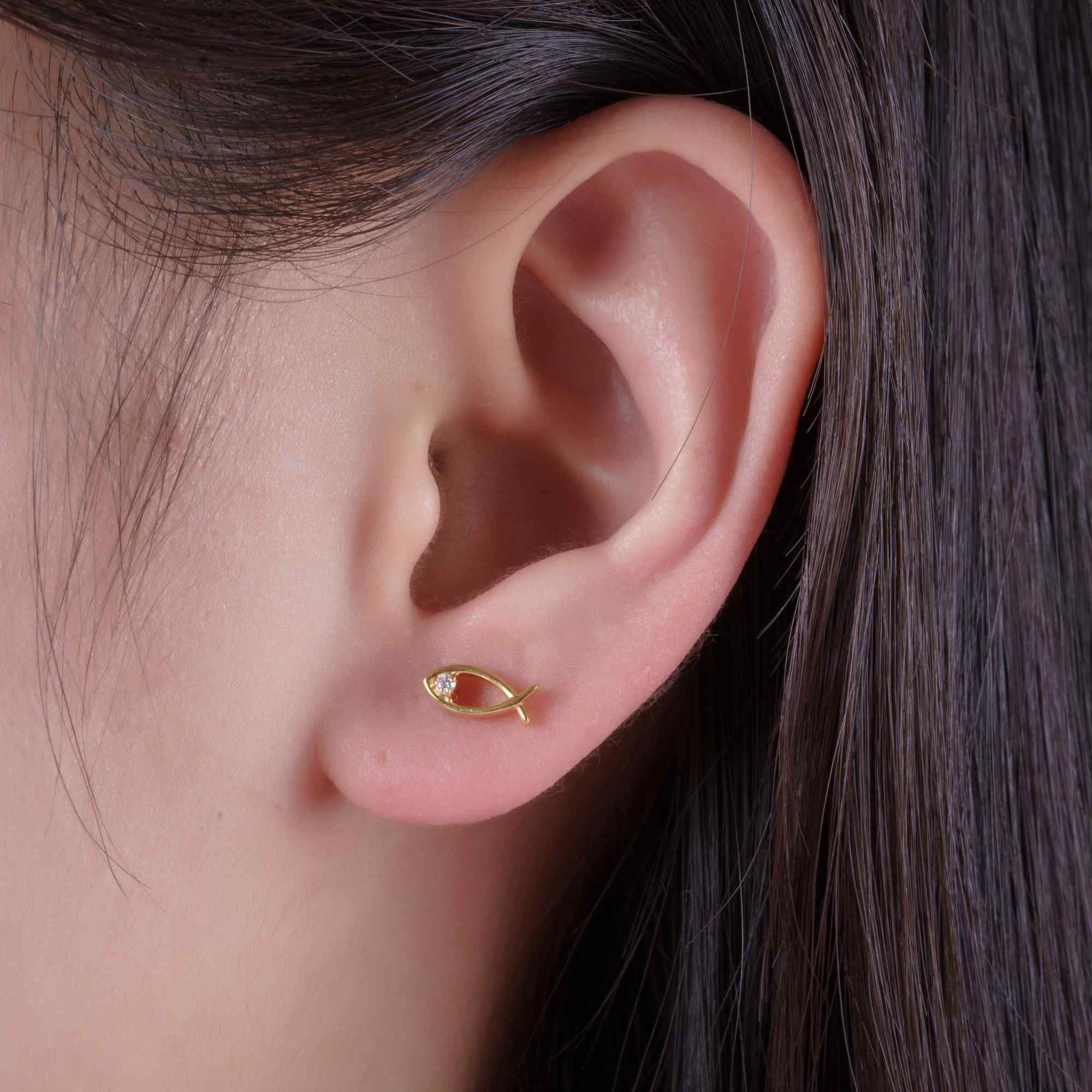Bông tai kim cương Ngư Quý thiết kế biểu tượng cá nhỏ xinh với viên kim cương tinh tế ở trung tâm. Kiểu dáng thanh mảnh, nhẹ nhàng, mang ý nghĩa may mắn và bình an. Phù hợp đeo hằng ngày hoặc phối cùng các thiết kế trong bộ sưu tập Ngư Quý.