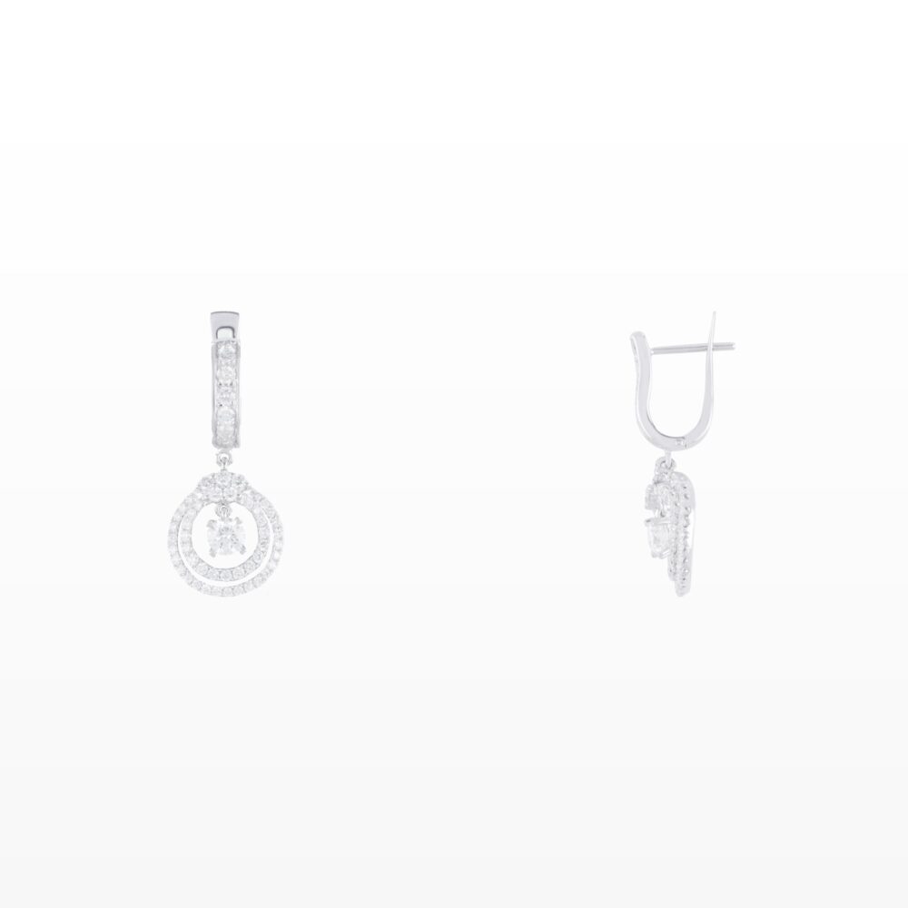 Thiết kế tựa như hai vòng tay ôm lấy nhau, biểu tượng cho sự gắn kết và yêu thương không có điểm kết thúc. Hai vòng tròn kim cương lấp lánh được chế tác tinh xảo, bao bọc viên kim cương trung tâm đang khẽ chuyển động, tạo nên hiệu ứng ánh sáng lung linh đầy cảm xúc trong từng nhịp bước.