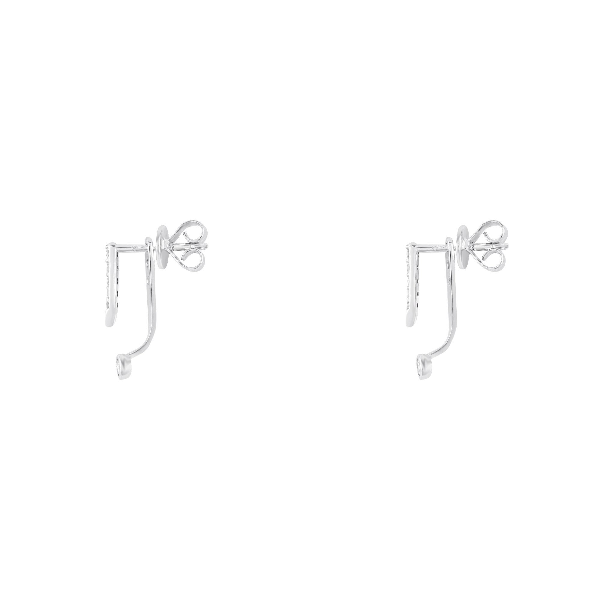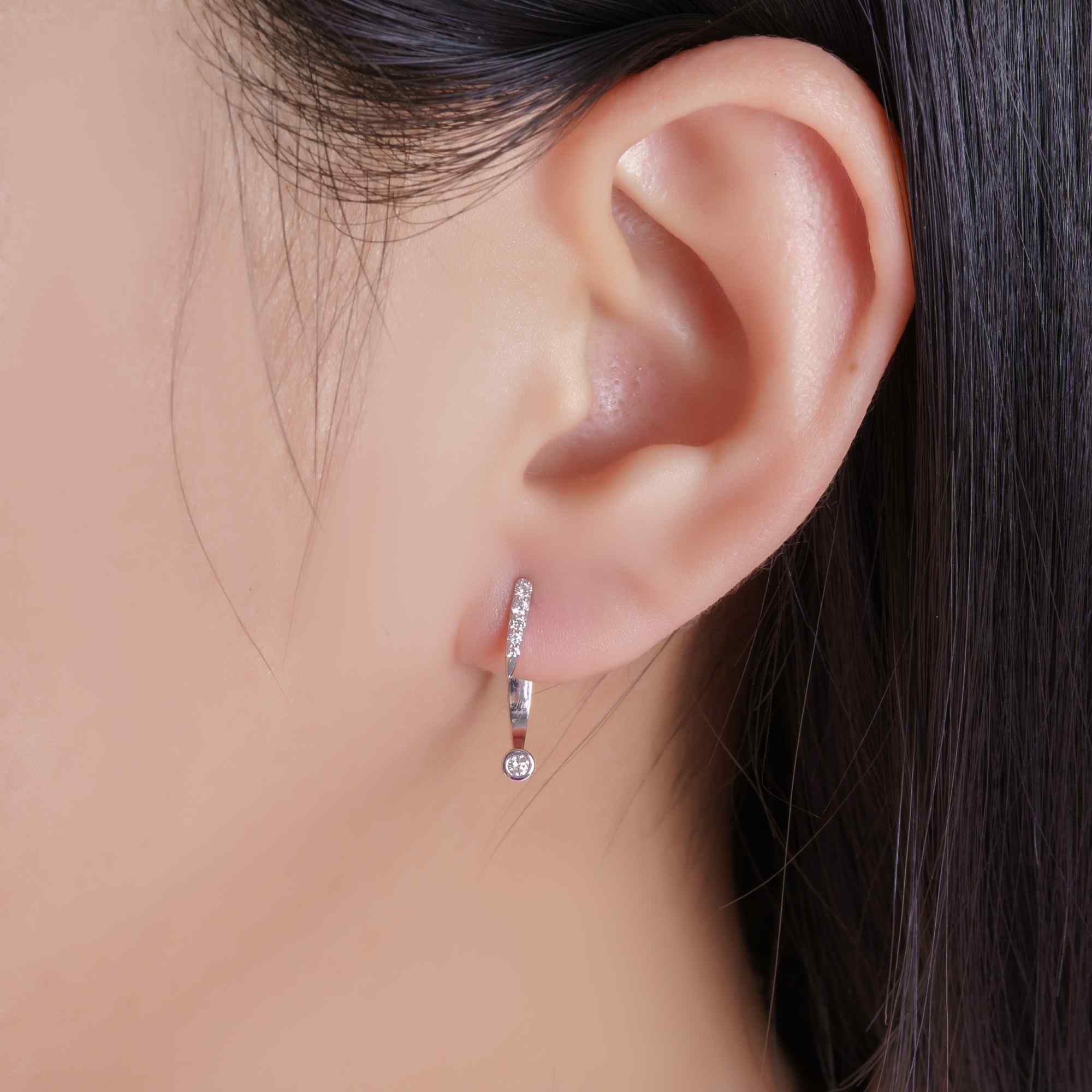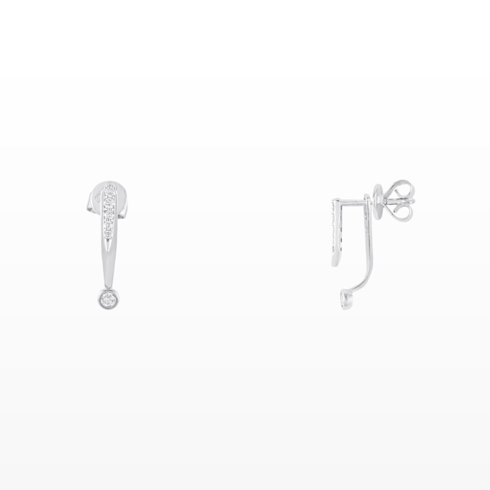 Đôi bông tai gây ấn tượng với thiết kế dáng thả thanh mảnh, đường nét gọn gàng và tinh giản. Phần thân được đính kim cương nhỏ sắp xếp đều đặn, kết hợp cùng viên kim cương tròn ở điểm rơi cuối, tạo hiệu ứng chuyển động nhẹ nhàng và ánh sáng lấp lánh đầy cuốn hút.
