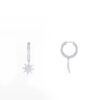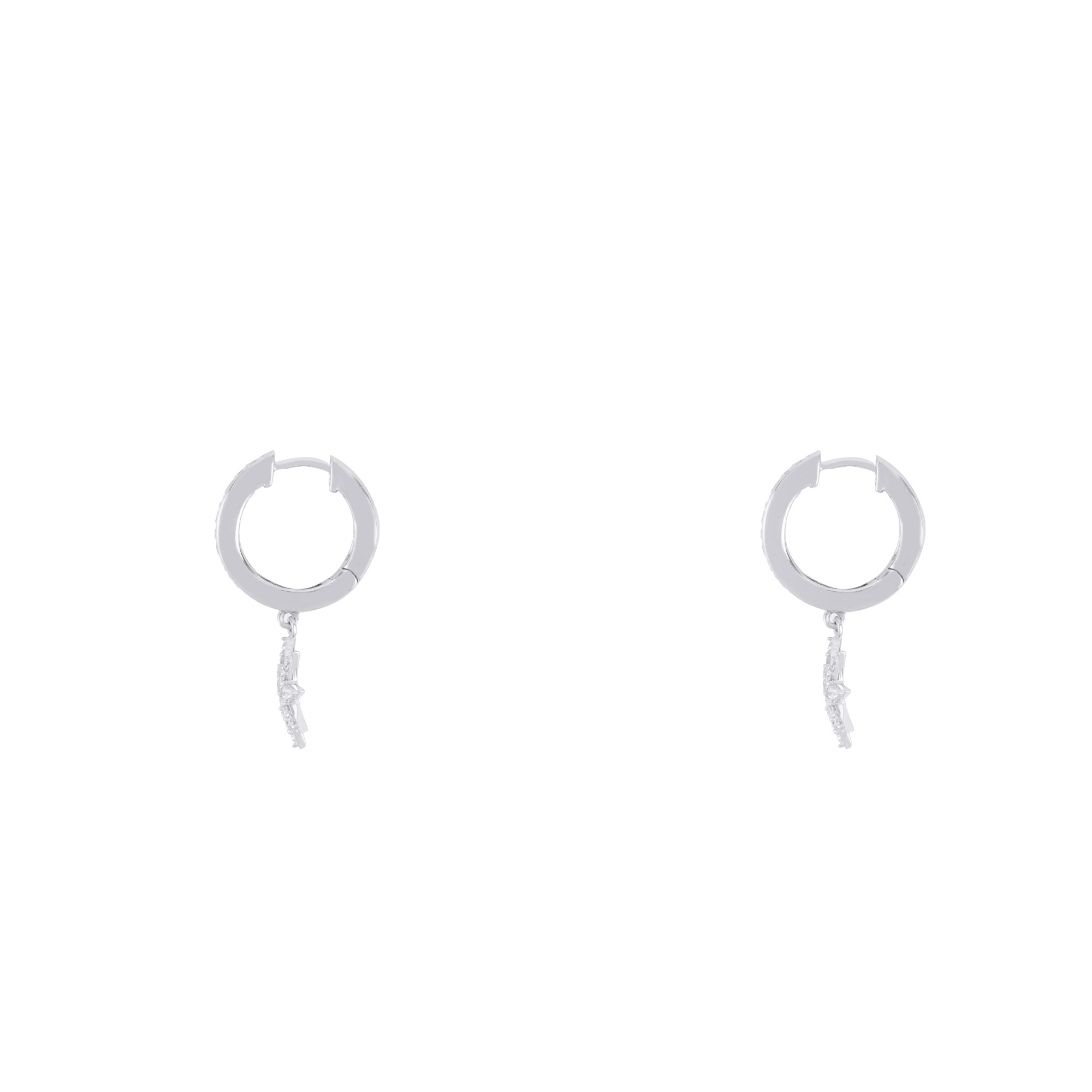 Bông tai thiết kế dạng khuyên thanh mảnh, kết hợp cùng chi tiết thả rời linh hoạt, mang đến hai sắc thái cảm xúc trong cùng một kiểu dáng. Những viên kim cương nhỏ được đính đều tay, tạo nên ánh sáng lấp lánh tinh tế, không phô trương nhưng đủ để thu hút mọi ánh nhìn.