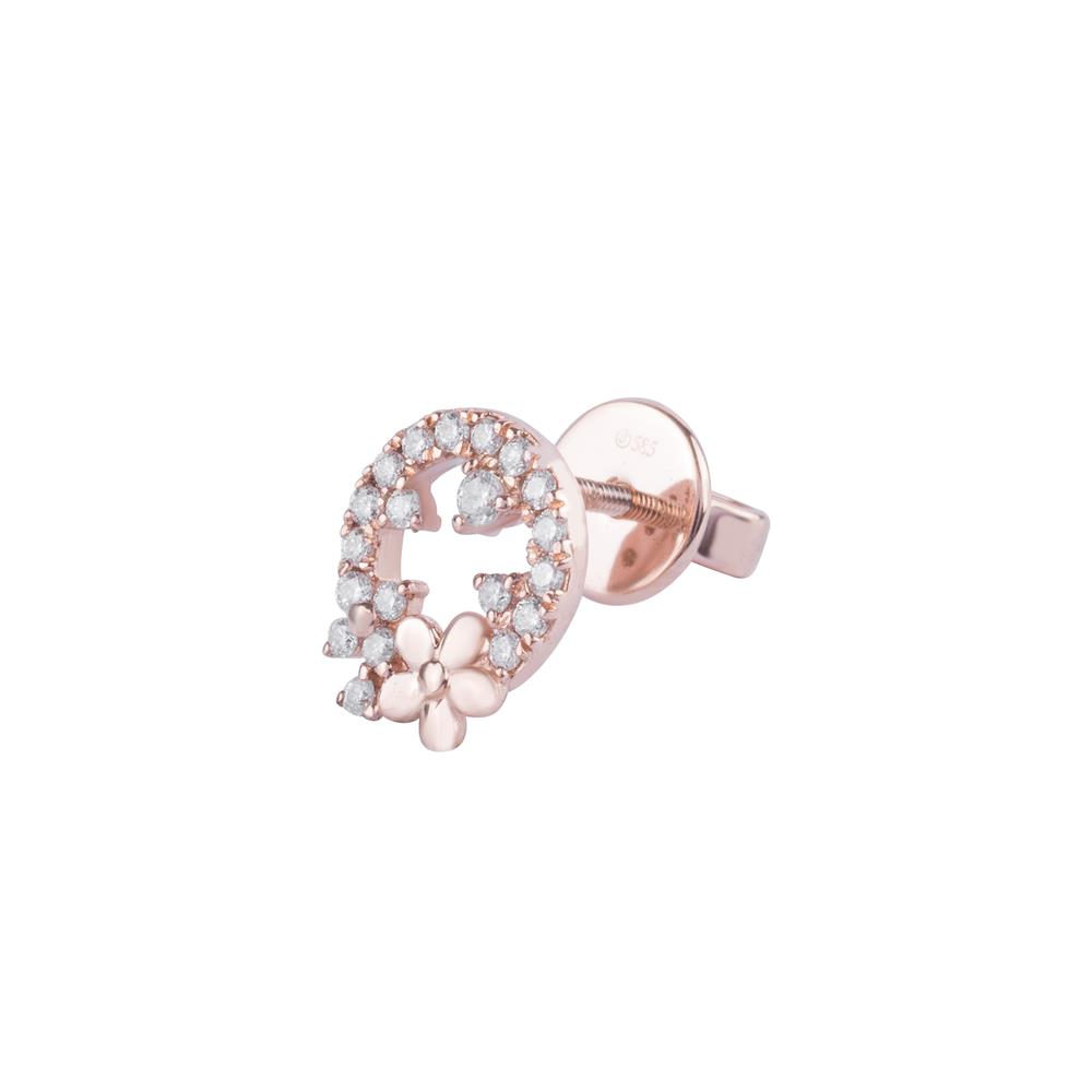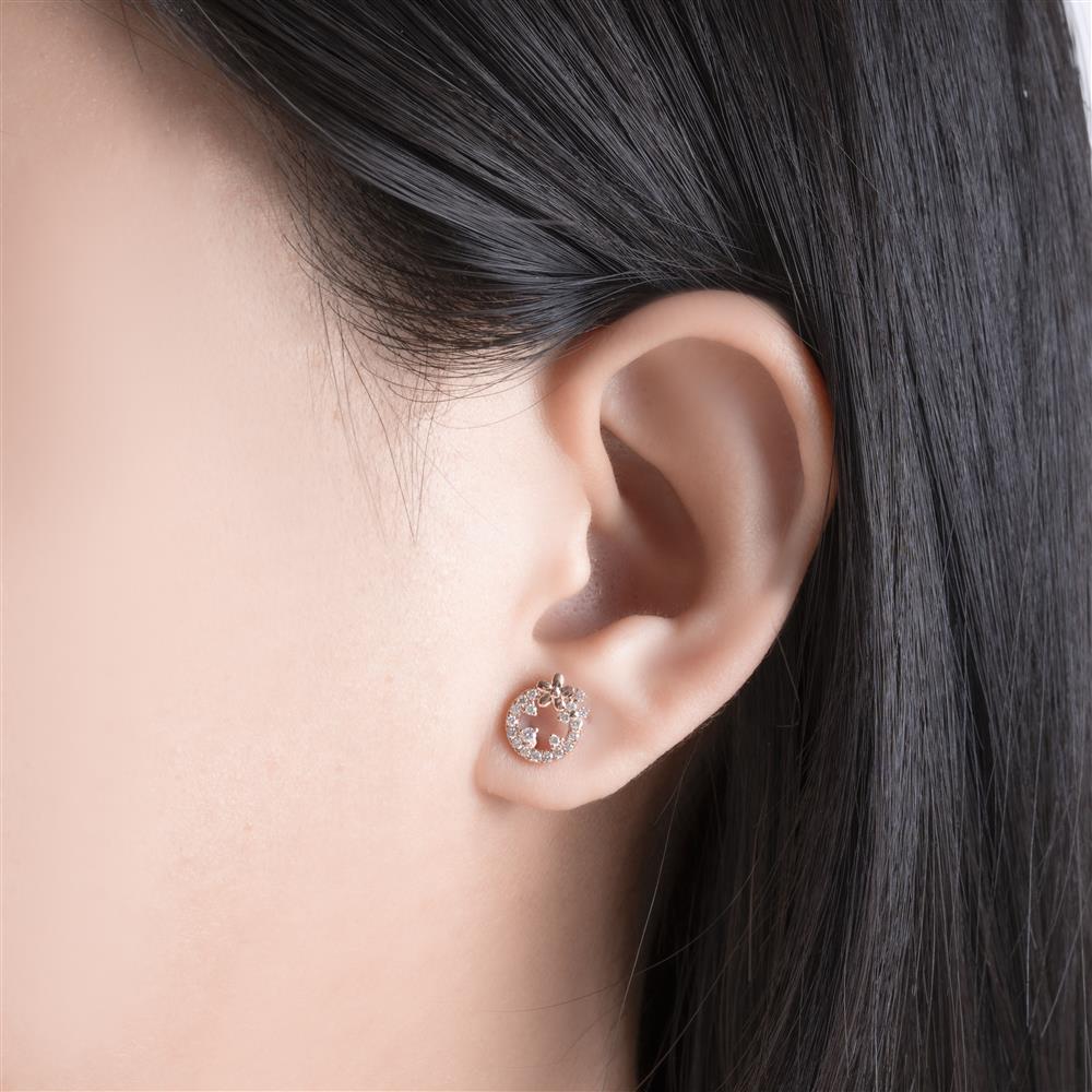 Thiết kế dáng tròn mềm mại, nổi bật với vòng kim cương tấm đính đều tạo hiệu ứng lấp lánh tinh tế. Điểm nhấn là chi tiết hoa nhỏ bằng vàng hồng đặt lệch duyên dáng, mang đến cảm giác nhẹ nhàng, nữ tính và ngọt ngào.