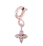 Tinh khôi và nữ tính, charm hoa bốn cánh được chế tác từ vàng hồng dịu dàng, điểm xuyết bốn viên kim cương lấp lánh ở từng cánh hoa. Biểu tượng của may mắn và tình yêu, món charm này mang lại nét duyên dáng và sang trọng đầy tinh tế cho người đeo