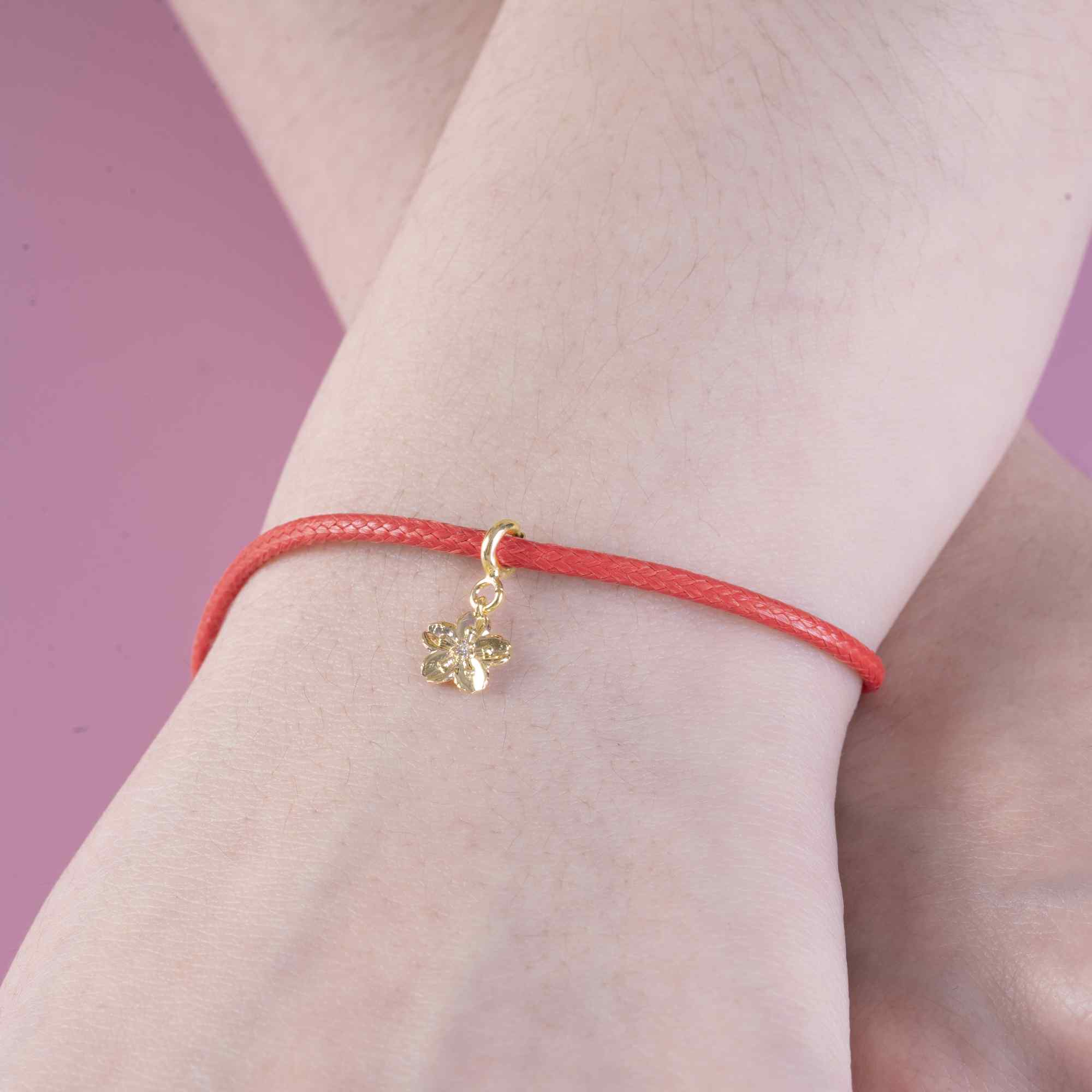 Thiết kế lấy cảm hứng từ đóa hoa năm cánh đang độ nở rộ – biểu tượng của sự viên mãn và những điều may mắn tròn đầy. Bề mặt vàng được đánh bóng mịn màng, phản chiếu ánh sáng ấm áp, trong khi viên đá nhỏ nơi tâm hoa tạo điểm nhấn lấp lánh đầy cuốn hút.
