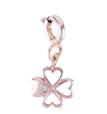 Charm cỏ bốn lá vàng hồng với thiết kế viền trái tim độc đáo, đính nhẹ một viên đá sáng tinh khôi, mang đến sự kết hợp giữa may mắn và tình yêu. Mỗi cánh lá như một lời nhắn gửi dịu dàng: hãy tin vào hạnh phúc và trân trọng những khoảnh khắc yêu thương trong đời