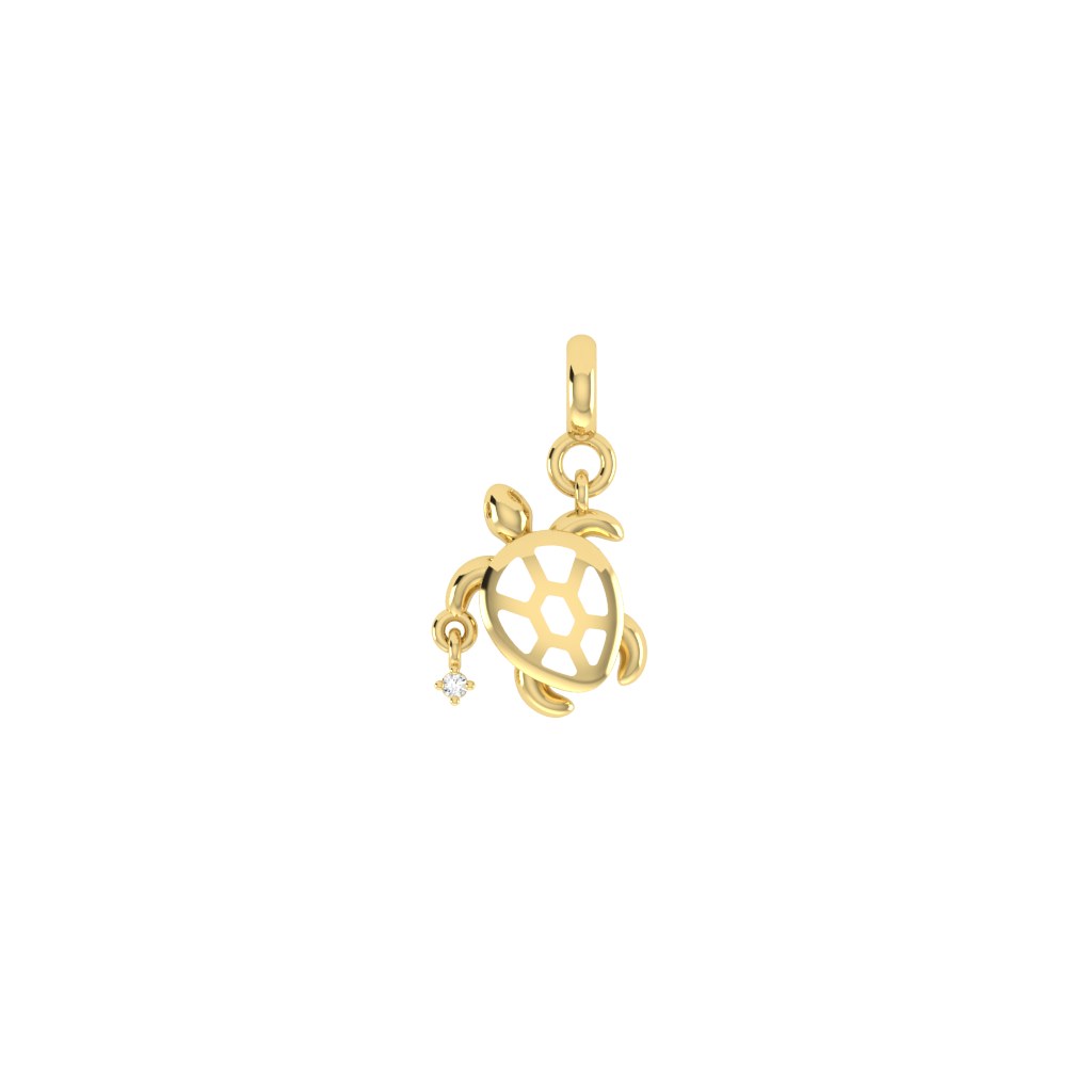 Lấy cảm hứng từ hình ảnh chú rùa – biểu tượng của sự bền bỉ, bình an và trường thọ, thiết kế charm được tạo hình đáng yêu với những đường nét bo tròn mềm mại. Mai rùa được cách điệu tinh giản, kết hợp cùng viên kim cương thiên nhiên nhỏ xinh đung đưa, tạo điểm nhấn lấp lánh tinh tế.