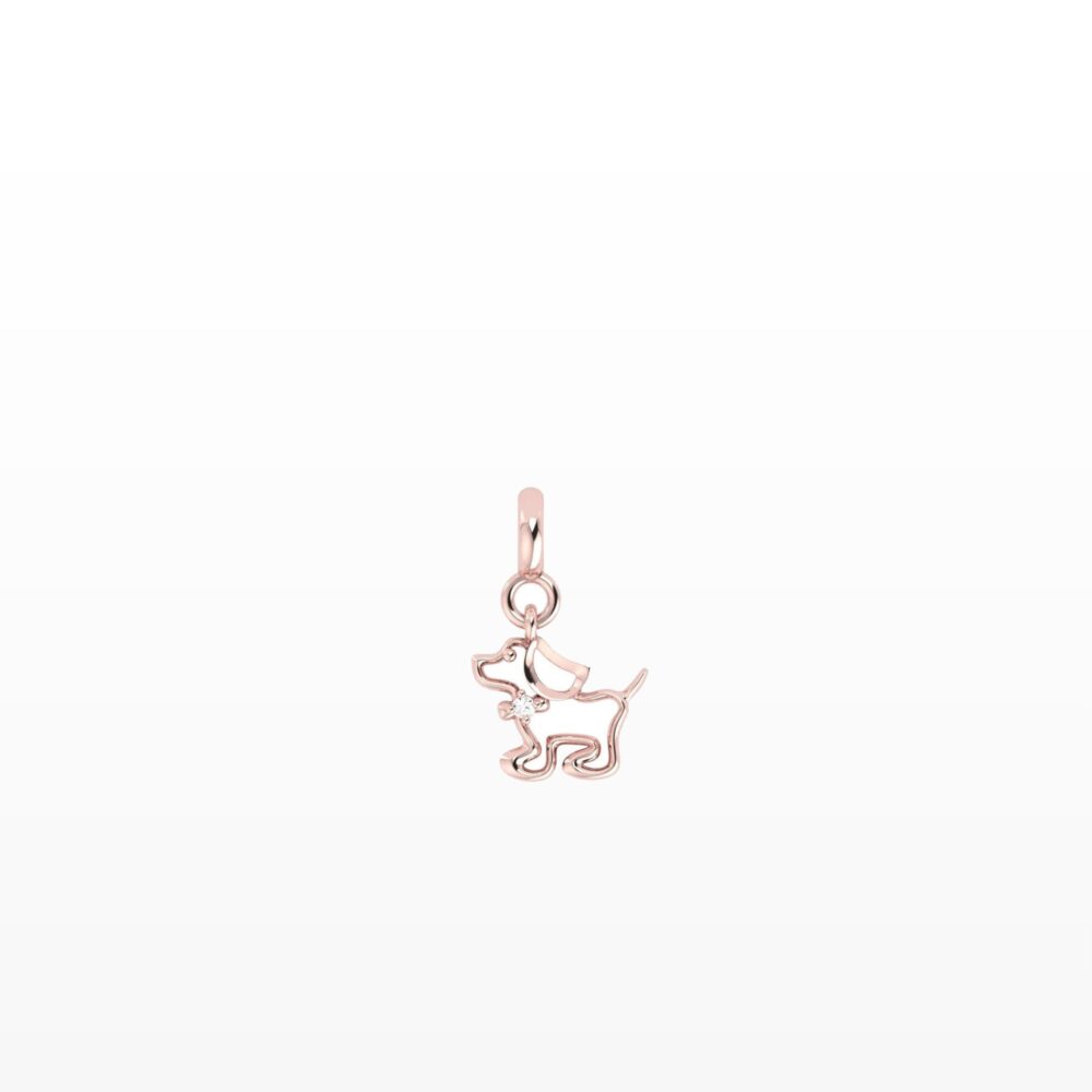 Charm Kim Tuất mang hình ảnh chú chó được tạo hình tối giản nhưng đầy sinh động – biểu trưng cho sự trung thành, chân thành và tinh thần bảo vệ bền bỉ. Các đường nét bo tròn mềm mại kết hợp chi tiết đính đá nhỏ tinh tế tạo điểm nhấn lấp lánh, giúp tổng thể vừa đáng yêu vừa sang trọng.