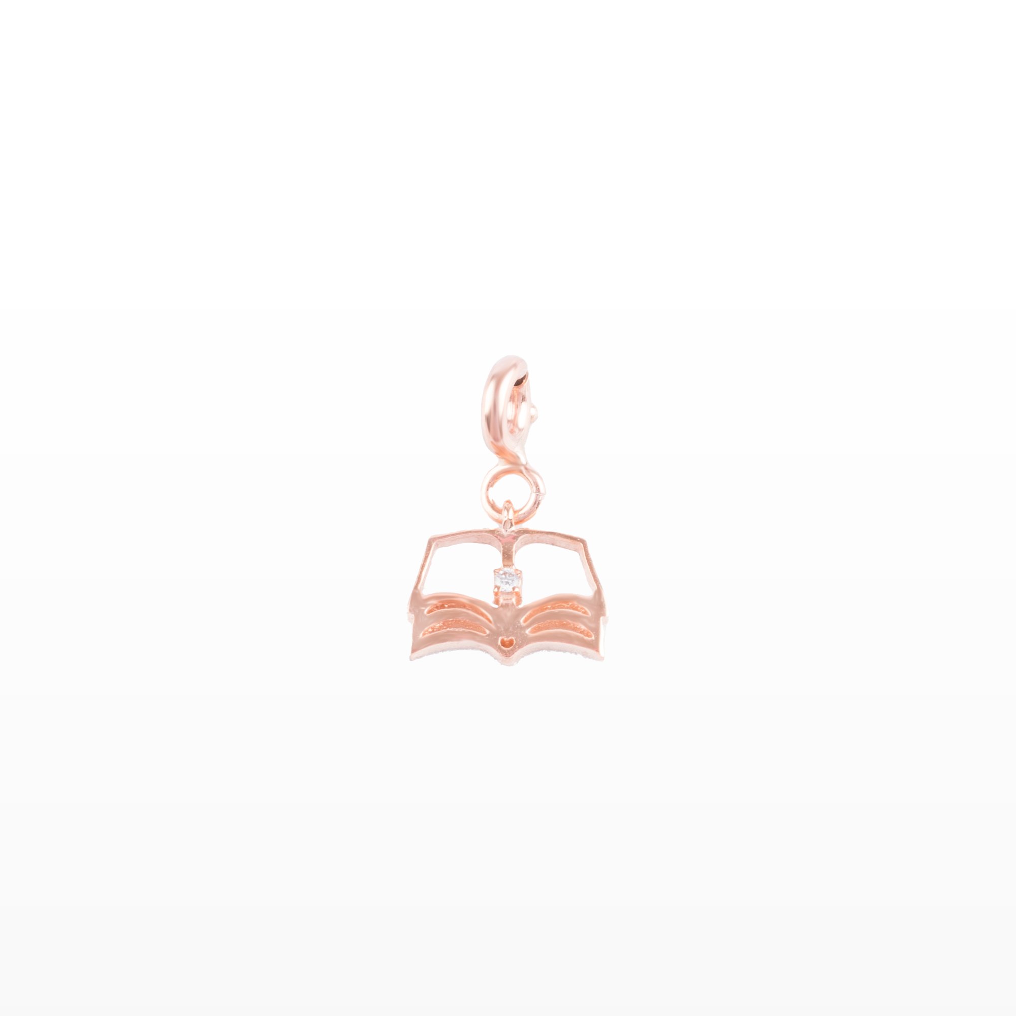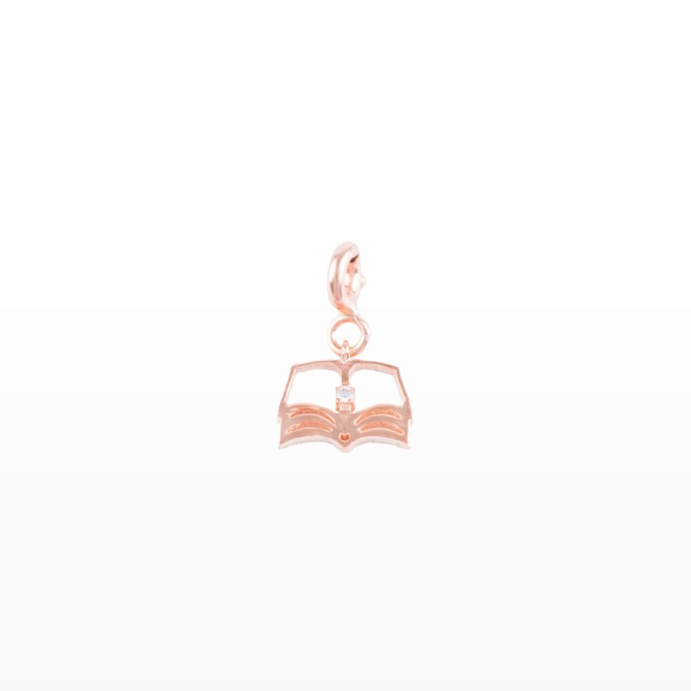 Charm kim cương với tạo hình quyển sách mở là biểu tượng của tri thức, hành trình trưởng thành và những câu chuyện được viết bằng tình yêu. Những đường nét vàng thanh mảnh tái hiện trang sách đang mở ra, ở trung tâm là viên kim cương nhỏ lấp lánh — như ánh sáng của hiểu biết và trái tim luôn hướng về điều tốt đẹp.
