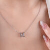 Dây chuyền kim cương với thiết kế có hình chữ M cách điệu được đính kim cương một cách tinh tế. Với thiết kế hình mặt chữ mang biểu tượng cho điểm nhấn vẻ đẹp phong cách cá nhân riêng.