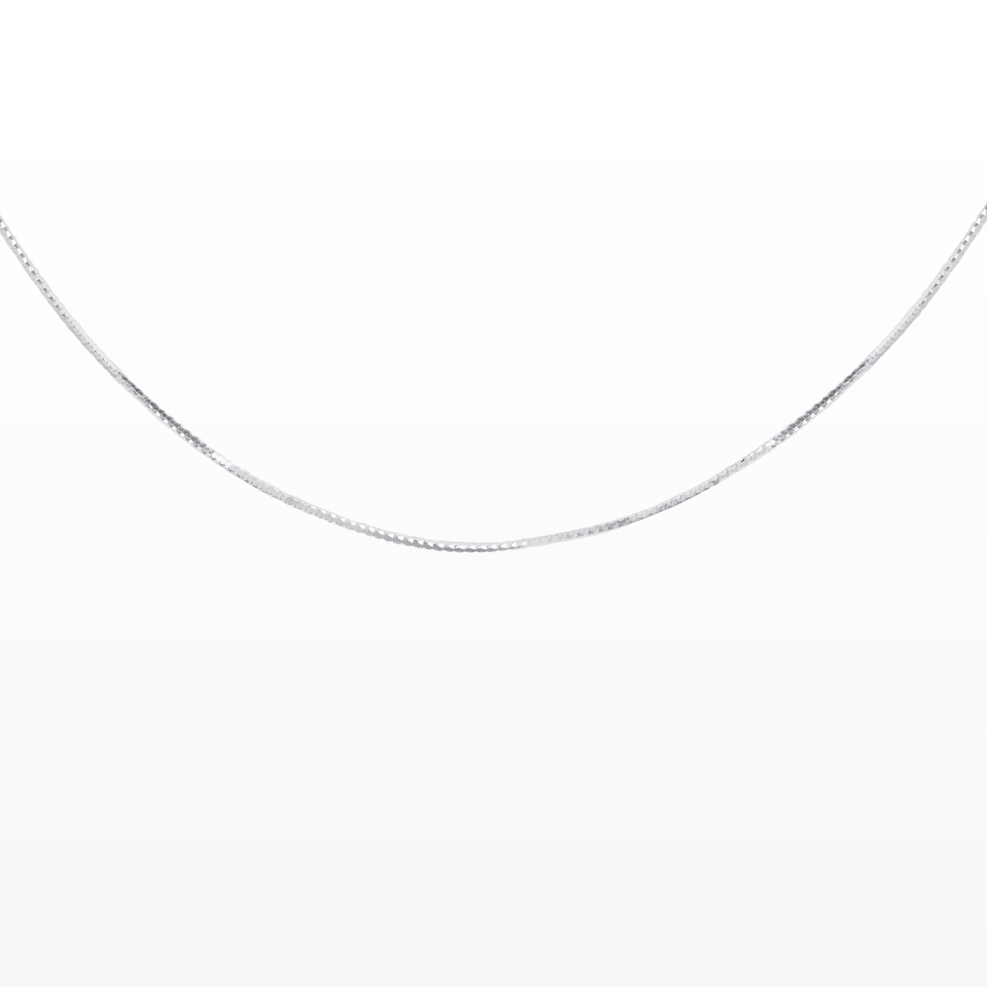 Chiếc dây chuyền mang thiết kế tối giản với sợi dây thanh mảnh, tinh tế, tôn lên vẻ đẹp nhẹ nhàng và thuần khiết của người đeo. Bề mặt dây được hoàn thiện tỉ mỉ, tạo độ bắt sáng nhẹ, mang lại hiệu ứng lấp lánh tinh tế trong từng chuyển động.